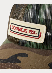 Camo mesh trucker cap. Ripstop bill. Custom-embroidered logo patch at the front inspired by an original Double RL ball cap from 1993. Signature green underbill. Adjustable back strap. DETAILS - Seamed ripstop bill. Signature green underbill. - Six-panel construction. - Ripstop sweatband. - Embroidered twill “Double RL” patch at the front. - Adjustable snapped back strap. - 22.75" inner circumference. - Shell: 100% polyester. Bill: 100% cotton. - Hand wash. - Imported. - Style Number: 100058171