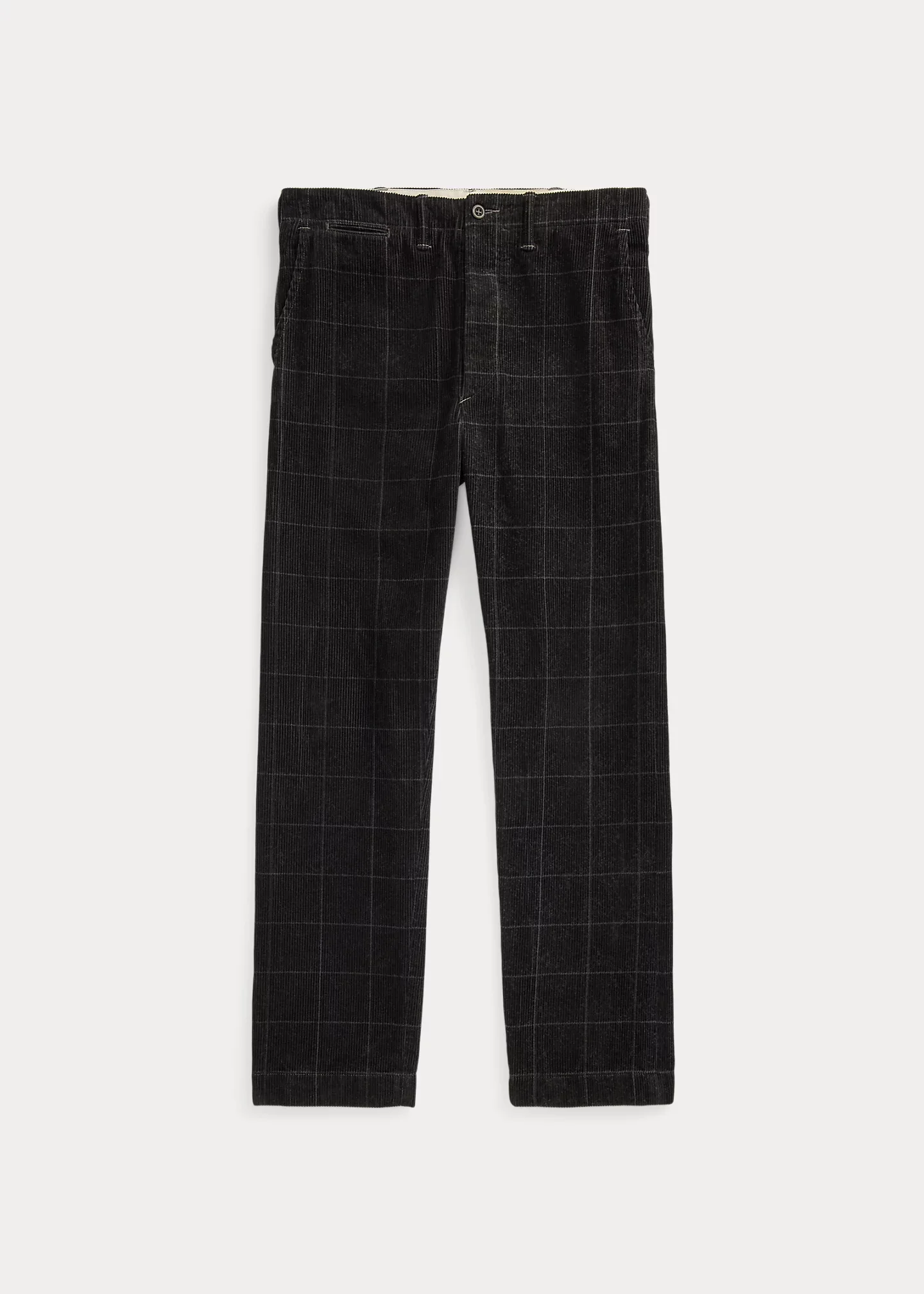 Trim-fitting pants with a straight leg. Textured corduroy fabric is printed with a windowpane pattern. Side adjusters. Corozo buttons. DETAILS - Trim fit with a straight leg and standard rise. - Size 32W has a 12" rise and a 17.25" leg opening. - Belt loops. Side adjusters. Button fly with a buttoned closure. Corozo buttons. - Two front angled pockets. Right hip coin pocket. Two back buttoned pockets. - 100% cotton. - Machine washable. - Imported. - Model is 6'1" (185 cm) and wears a size 32W x 32L. - Style Number: 100066388