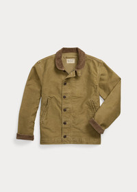 Made from a specially developed grosgrain-weave fabric that is soft yet durable. Inspired by vintage nautical apparel. Corduroy collar. Lined at the front with sateen. Pigment-coated and washed. DETAILS - Size medium has a 26.75" front body length, a 25.75" back body length, a 19" shoulder, a 45.5" chest, and a 34.25" sleeve length. Sleeve length is taken from the center back of the neck. - Corduroy shawl collar. Buttoned throat latch. Full-zip front. Buttoned storm placket. - Long sleeves. Corduroy facing at the cuffs. Ventilating metal grommets at the underarms. - Two hand-warmer pockets. Interior left waist pocket. - Drawstring hem. Lined at the front body. - Shell and front body lining: 100% cotton. - Machine washable. - Imported. - Due to the natural characteristics of this material, the coloring may rub off onto fabrics and upholstery. - Style Number: 100026914