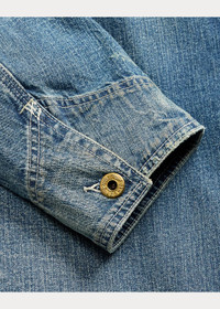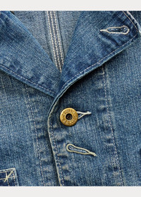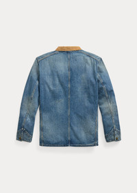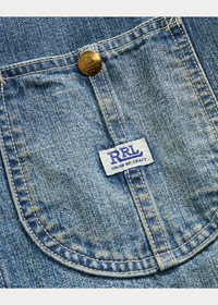Lightweight jacket made from 11 oz. Japanese denim that is dyed with true indigo. Fine-wale corduroy collar. Details based on 1940s workwear. Vintage-inspired fit with dropped shoulders and a slightly tapered waist. Sanforized® to minimize shrinkage. DETAILS - Vintage-inspired fit with dropped shoulders and a slightly tapered waist. - Size medium has a 29" front body length, a 27.5" back body length, a 19" shoulder, a 44.75" chest, and a 35" sleeve length. Sleeve length is taken from the center back of the neck. - Corduroy straight collar. Buttoned placket. Metal buttons. - Long sleeves with buttoned cuffs. - Two chest snapped pockets with left watch pocket. Two front waist patch pockets. - “RRL Union of Craft” label at the chest pocket. - 100% cotton. - Machine washable. Imported. - Dyed with true indigo, which may rub off onto fabrics, leather, and upholstery. - Style Number: 100056758