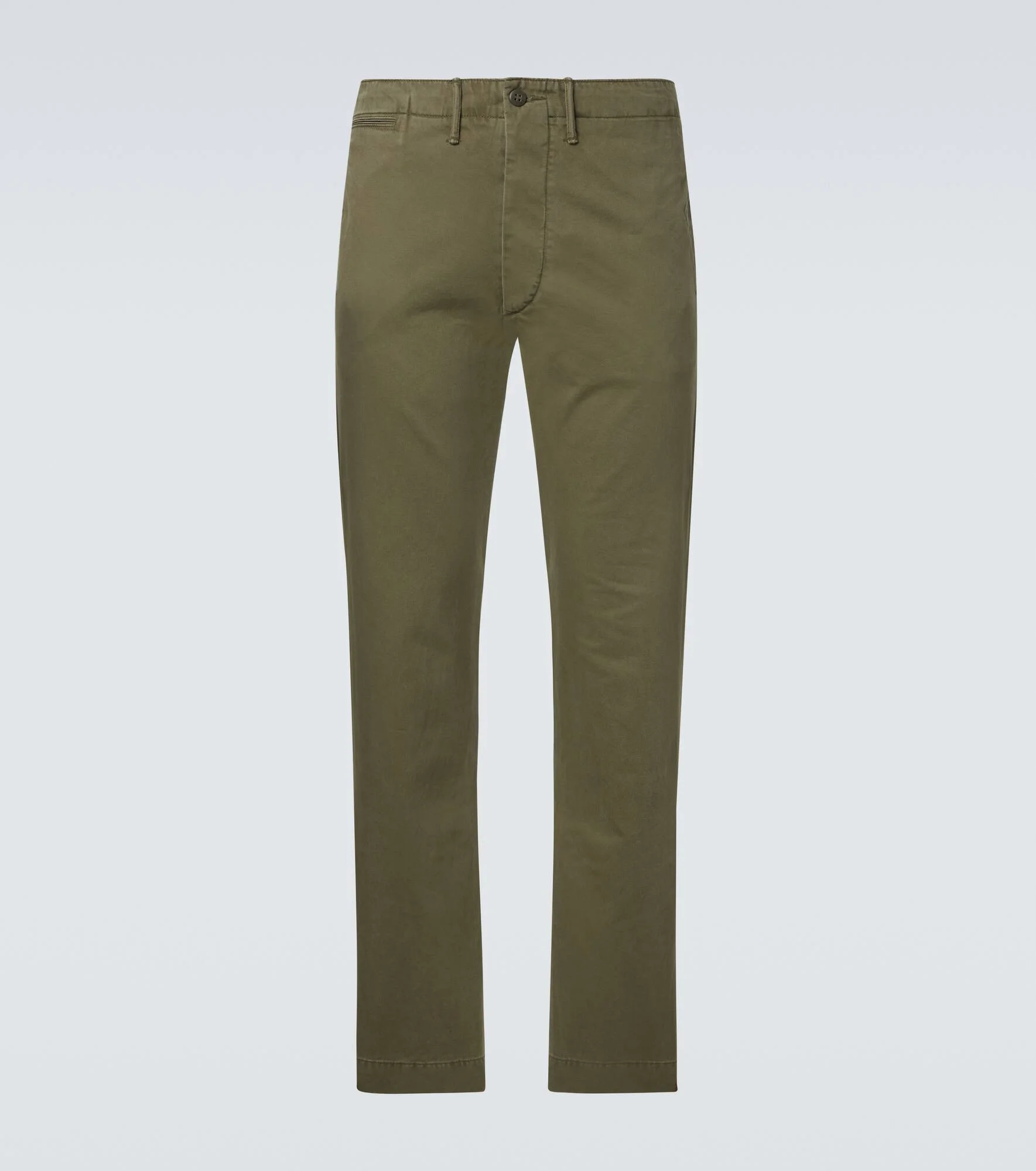 Inspired by the heritage of the American West, Ralph Lauren's RRL label creates vintage-inspired workwear for every day. These chinos are crafted from cotton with a slightly washed hue. Product Details - Material: 100% cotton - Care instructions: machine wash at 30 degrees - Made in China - Designer color name: Olive - Item color: green - Closure: concealed button placket - Pockets: side slit pockets, back pockets - Belt loops - Item number: P01086873 Size & Fit - True to size - Non-stretchy fabric - Straight leg - Height of model is 189cm-74.5" and wears a size 34/32