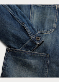 Lightweight jacket made with 8 oz. Japanese cotton-and-linen denim. Medium-indigo wash and details based on 1930s workwear. Vintage-inspired fit with dropped shoulders and a slightly tapered waist. Sanforized® to minimize shrinkage. DETAILS - Size medium has a 29.25" front body length, a 27.25" back body length, a 19.25" shoulder, a 45" chest, and a 34.75" sleeve length. Sleeve length is taken from the center back of the neck and changes 1" between sizes. - Point collar. Buttoned placket. - Long sleeves with buttoned cuffs. - Two chest patch pockets. Two front waist patch pockets. - 88% cotton, 12% linen. - Machine washable. - Imported. - Dyed with indigo, which may rub off onto fabrics, leather, and upholstery. Style Number: 648412