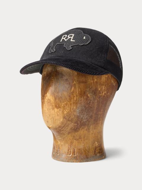 Mesh trucker cap with a denim bill. Custom-embroidered logo patch with a Western-inspired graphic at the front. Signature green underbill. Adjustable back strap. DETAILS - Seamed denim bill. Signature green underbill. - Six-panel construction. - Denim sweatband. Mesh lining at the front panels. - Embroidered “RRL Authentic Western Wear” patch at the front. - Adjustable snapped back strap. - 22.75" inner circumference. - Shell and front panel lining: 100% polyester. Bill: 100% cotton. - Hand wash or dry clean. Imported. - Due to the natural characteristics of this material, the coloring may rub off onto fabrics and upholstery. - Style Number: 100081964