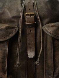 distressed leather rucksack Highlights - Brown - Leather - Distressed finish - Single top handle - Foldover top - Buckle fastening - Two button-fastening pockets - Adjustable shoulder straps - Main compartment Imported Composition Outer: Buffalo Leather 100%