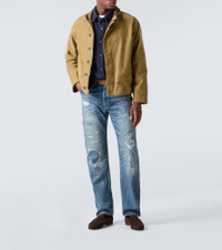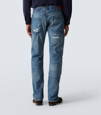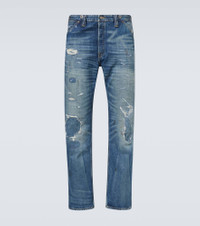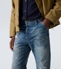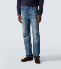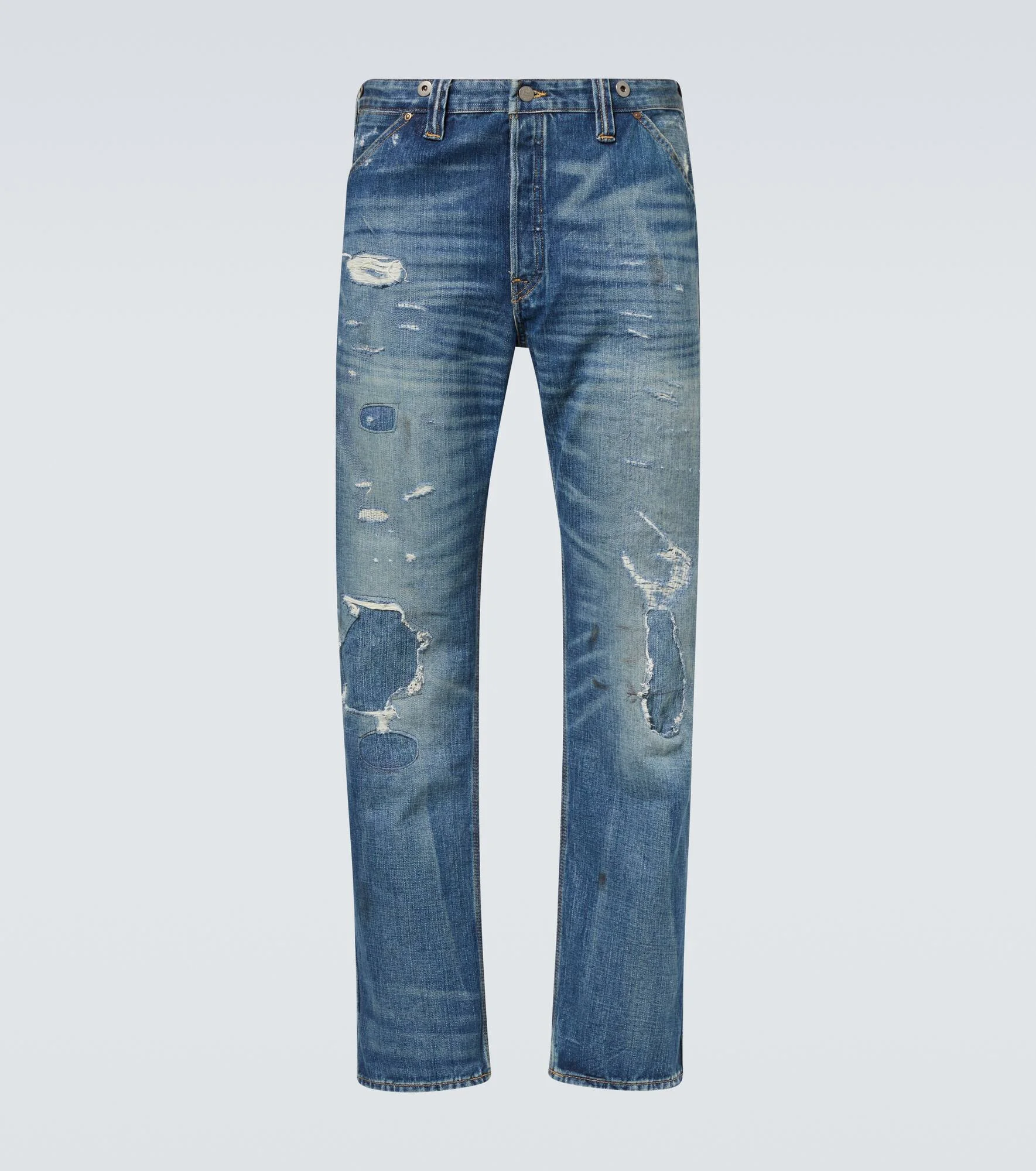 Inspired by the heritage of the American West, Ralph Lauren's RRL label creates vintage-inspired workwear for every day. These straight jeans are designed with a distressed silhouette and detailed with a leather patch at the back. Product Details - Material: 100% cotton - Care instructions: machine wash at 30 degrees - Made in Mexico - Designer color name: Brayton Wash - Item color: blue - Details: 100% cow leather - Contains non-textile parts of animal origin - Closure: concealed button placket - Pockets: five pockets - Belt loops - Distressed details - Item number: P01086874 Size & Fit - Fits large to size - we recommend trying one size smaller - Non-stretchy fabric - Slim-leg - Mid-rise - The model in the picture is 185cm-6'1" and wearing a size 32/32