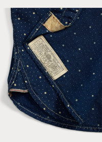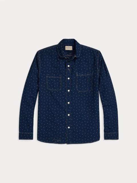 Made with indigo-dyed cotton cloth from Japan. Discharge-printed with a dot motif that is inspired by a vintage textile. Contrast chain-stitch detailing. Club collar and asymmetrical chest pockets are modeled after workshirts from the 1920s. Tinted for a vintage feel. River-shell buttons. DETAILS - Size medium has a 29" back body length, an 18.25" shoulder, a 43.5" chest, and a 34.75" sleeve length. Sleeve length is taken from the center back of the neck. - Club collar. Buttoned placket. River-shell buttons. - Long sleeves with buttoned barrel cuffs. - Two chest patch pockets. - 100% cotton. - Machine washable. - Imported. - Dyed with true indigo, which may rub off onto fabrics, leather, and upholstery. - Style Number: 100042963