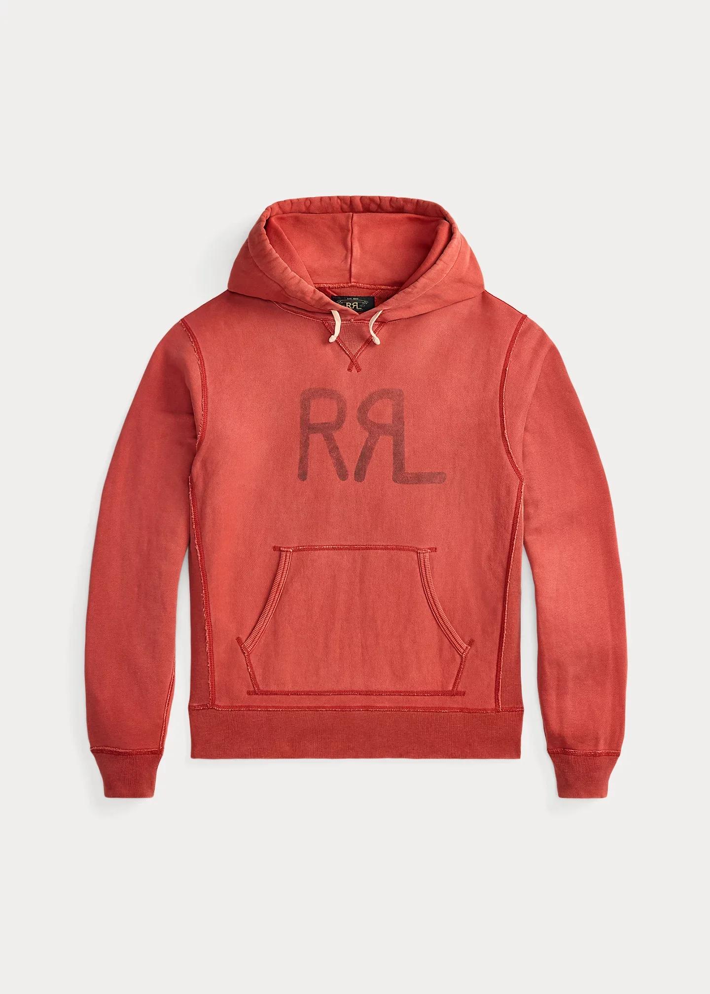 Made with medium-weight, brushed-back cotton French terry. Printed with the Double RL Ranch logo. Drawstring hood. Ribbed side panels and trims. Garment-dyed and washed to create tonal dimension and a faded look. DETAILS - Size medium has a 26.5" front body length, an 18" shoulder, a 44" chest, and a 34.5" sleeve length. Sleeve length is taken from the center back of the neck. - Drawstring hood. Double ribbed V-inset. - Long sleeves with ribbed cuffs. - Double RL Ranch logo printed at the center front. - Kangaroo pocket with ribbed trim. Ribbed side panels and hem. - 100% cotton (exclusive of trim). - Machine washable. - Imported. - Due to the natural characteristics of this material, the coloring may rub off onto fabrics and upholstery. - Style Number: 100067748