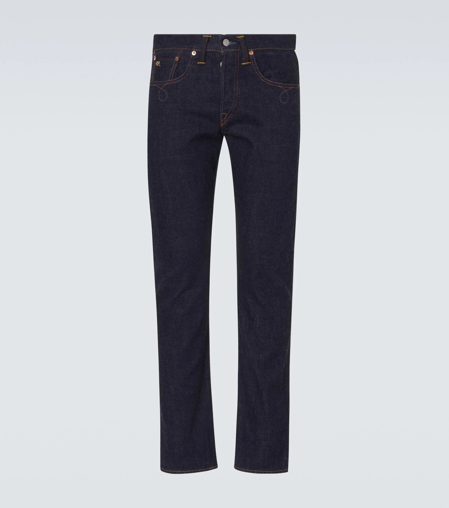 Inspired by the heritage of the American West, Ralph Lauren's RRL label creates vintage-inspired workwear for every day. These versatile jeans are cut from pure cotton denim to a slim-leg silhouette with decorative stitching. Product Details - Material: 100% cotton - Care instructions: machine wash at 30 degrees - Made in the USA - Color: blue - Designer color name: East/West Rinse - Details: 100% cow leather - Closure: concealed button placket - Belt loops - Pockets: five pockets - Item number: P01140891 Size & Fit - Fits small to size - we recommend trying one size larger - Non-stretchy fabric - Bootcut - Mid-rise - Height of model is 192cm-75.5" and wears a size 30