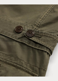Classic-fitting coverall made with 7.5 oz. cotton canvas. High-pile fleece collar. Concealed zip-front with a snapped closure at the top. Bi-swing construction allows for ease of movement at the shoulders. Adjustable buttoned tabs at the back waist and hems. Body is lined with brushed cotton. Lightly washed. DETAILS - Classic fit with a straight leg. - Size medium has a 19.25" shoulder, a 46.25" chest, a 35" sleeve length, and a 19.75" leg opening. Sleeve length is taken from the center back of the neck. - High-pile fleece spread collar. Concealed full-zip front with a snapped closure at the top. Leather zipper pull. - Long sleeves. Adjustable buttoned tabs at the cuffs. Buttoned shoulder epaulets. Gusseted shoulders. - Two chest buttoned pockets. Two side on-seam pockets with buttoned closures. Cargo pocket at each leg. - Reinforcements at the knees and seat. - Adjustable buttoned tabs at the back waist and hems. - Fully lined. Body is lined with brushed cotton. - Shell and body lining: 100% cotton. Collar: 100% polyester. Sleeve lining: 51% cupro, 49% cotton. Machine washable. Imported. - Style Number: 100056759