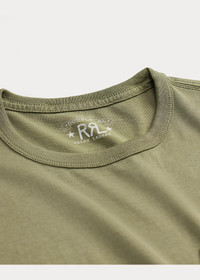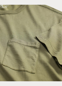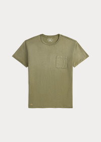 Made with soft cotton jersey. Seamless construction authentically recreated from ’40s basic training T-shirts. Garment-dyed and washed to create a timeworn look. “RRL” embroidered at the left hem. DETAILS - Size medium has a 27.5" front body length, an 18.25" shoulder, and a 41" chest. - Crewneck. - Short sleeves. - Left chest patch pocket. - “RRL” embroidered at the left hem. - 100% cotton. - Machine washable. - Imported. - Coloring may rub off onto fabrics and upholstery. - Style Number: 100086513