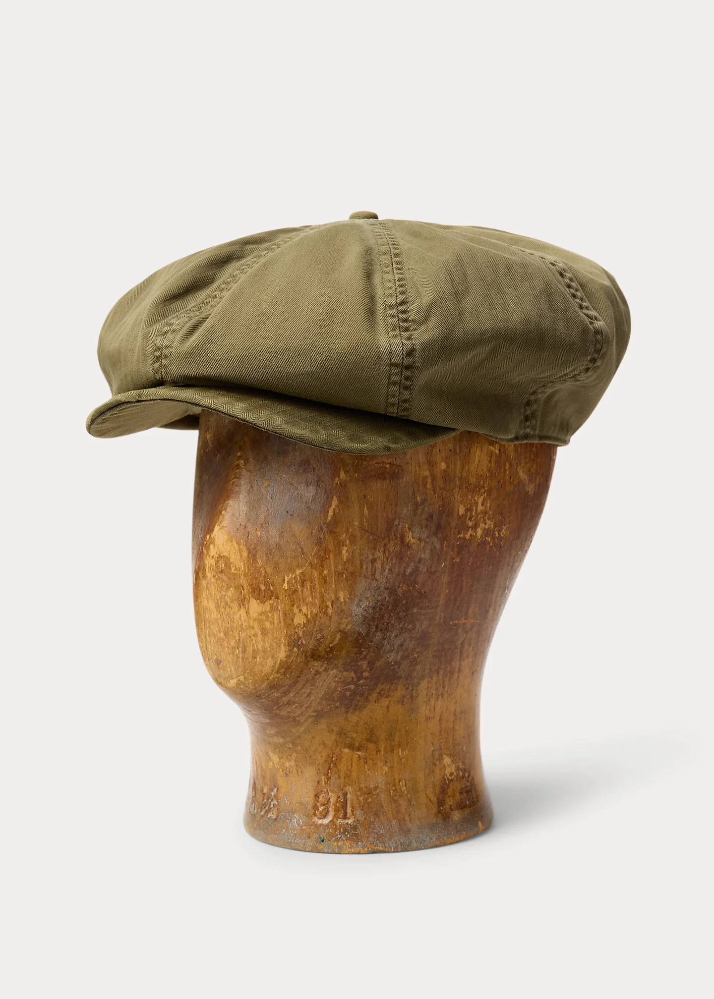 Garment-dyed newsboy cap constructed with alternating panels of twill and herringbone twill throughout the crown. DETAILS - Bill. Eight-panel construction. - Twill sweatband. - Lined with cotton twill. - Size S: 22" inner circumference. - Size M: 22.75" inner circumference. - Size L: 24" inner circumference. - Crown, bill, and lining: 100% cotton. - Dry clean. - Imported. - Style Number: 100088446