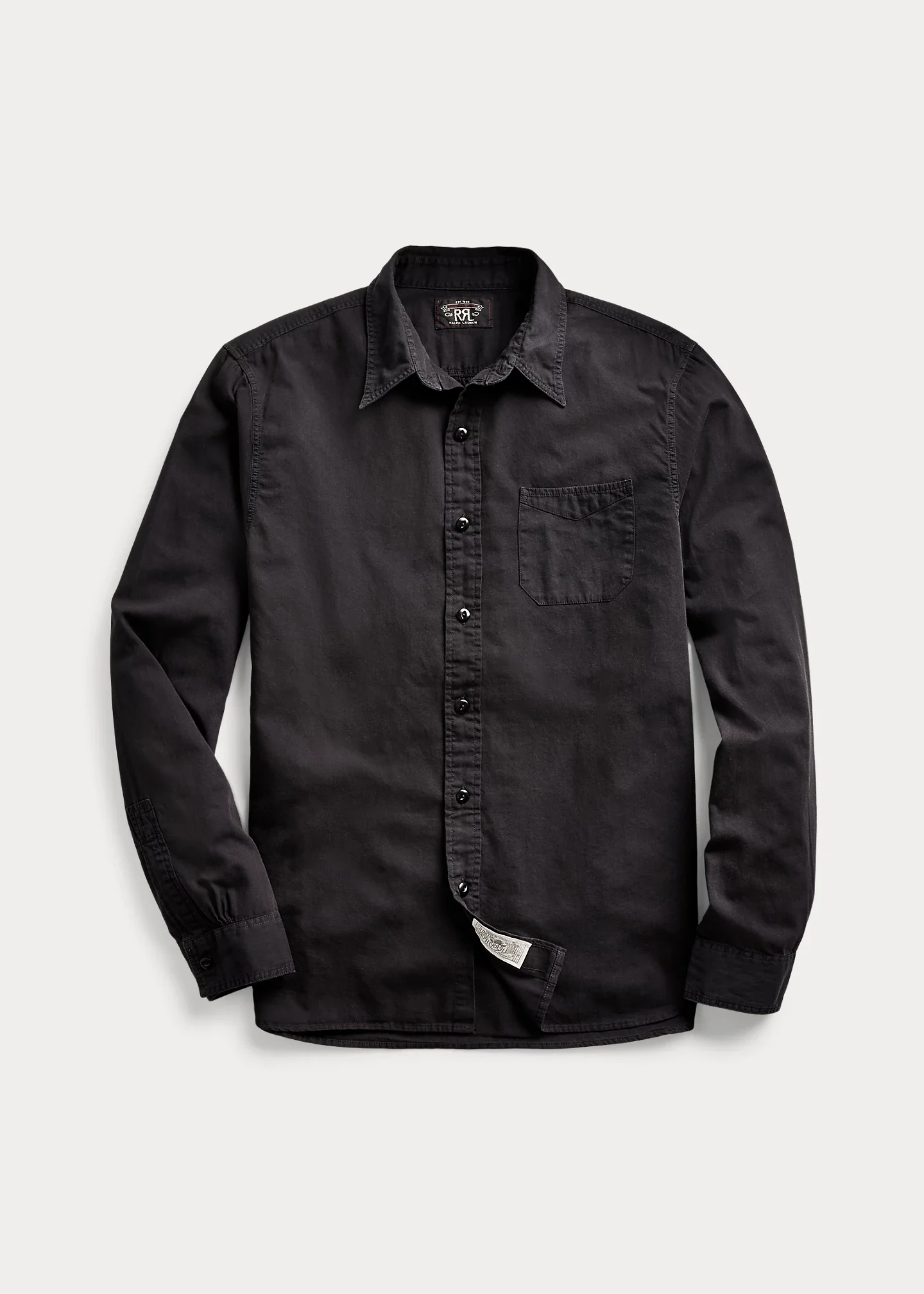 Easy-fitting shirt made from lightweight cotton twill. Garment-dyed and washed. Details inspired by workwear from the 1930s. DETAILS - Easy fit. - Size medium has a 29½" back body length, an 18¼" shoulder, a 43½" chest, and a 34¾" sleeve length. Sleeve length changes 1" between sizes. - Point collar. Buttoned placket. Corozo buttons. - Long sleeves with buttoned barrel cuffs. - Left chest patch pocket. - Shirred back yoke. - 100% cotton. - Machine washable. - Imported. Style Number: 516571
