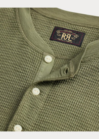 Garment-Dyed Waffle-Knit Henley Shirt