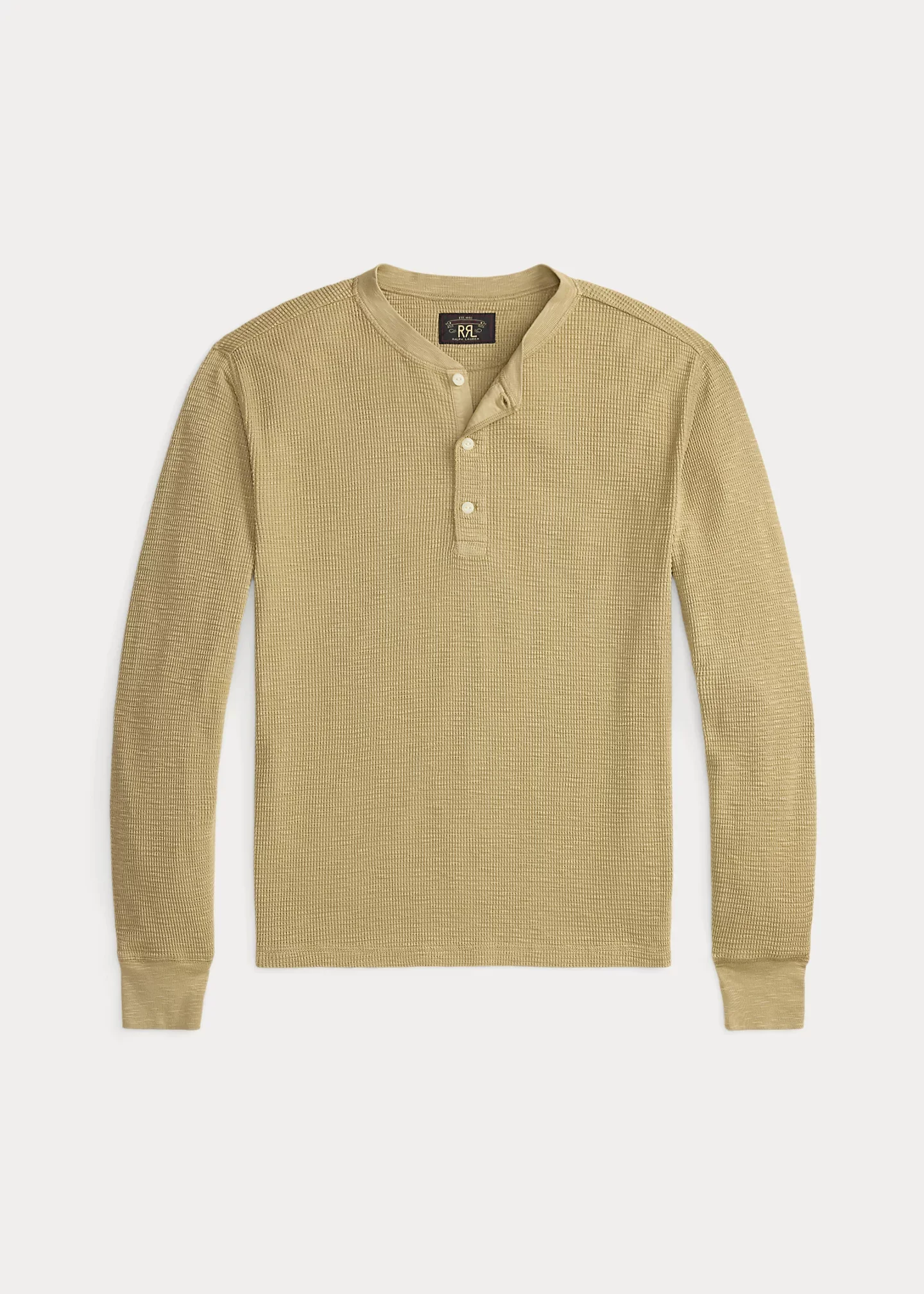 Made with substantial waffle-knit cotton fabric and garment-dyed. Sateen placket facing. Ribbed trim. Tonal stitching. Vintage-inspired buttons. Washed for softness. DETAILS - Size medium has a 27.5" front body length, a 17.5" shoulder, a 38" chest, and a 34.5" sleeve length. Sleeve length is taken from the center back of the neck. - Henley neckline. Three-button placket with sateen facing. - Long sleeves with ribbed cuffs. - 100% cotton. - Machine washable. - Imported. - Style Number: 100078276