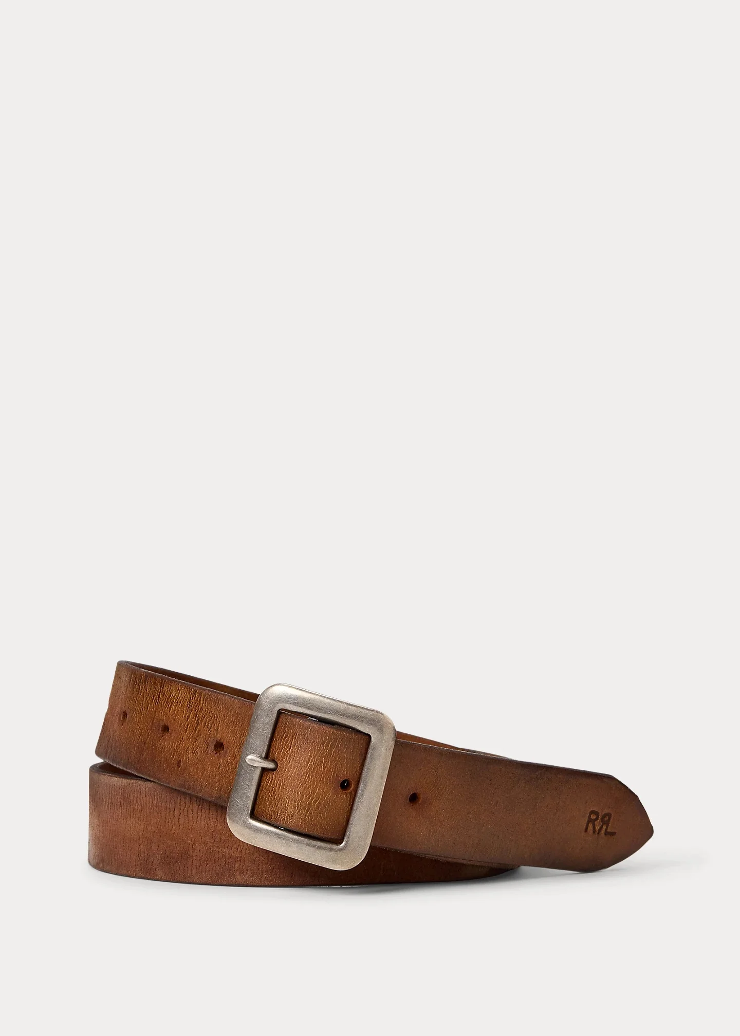Made in Italy from vegetable-tanned leather. Hand-burnished using a multi-step process for a timeworn look. Custom buckle. DETAILS - 1.25" wide. - Single-prong buckle. - "RL"-debossed pointed leather tip. - Leather. - Made in Italy. - Style Number: 359560