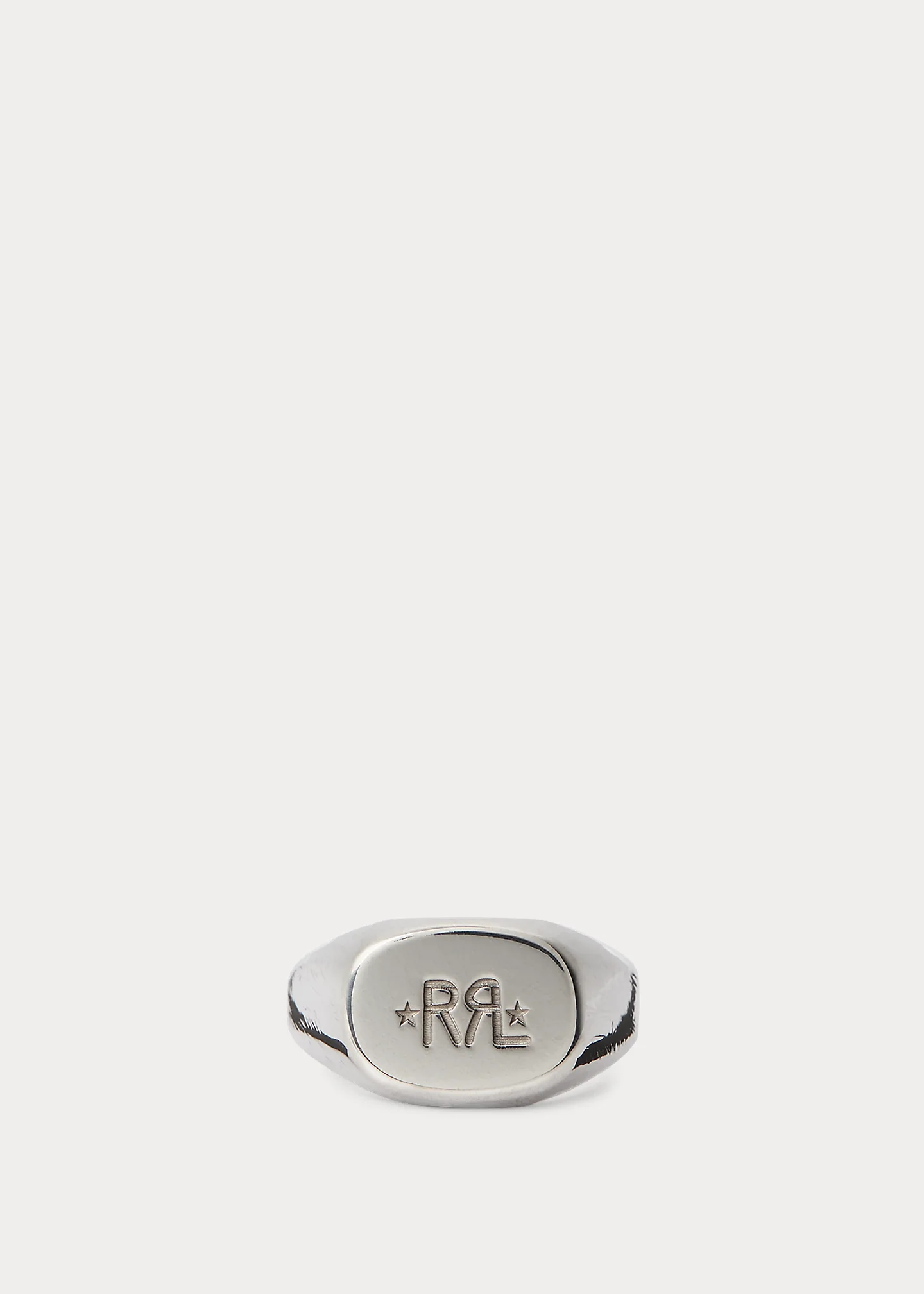 Solid .925 sterling silver is forged and finished entirely by hand in America. Each piece will slowly develop a unique patina with age and wear. “RRL” logo engraved at the top. DETAILS - ½" wide. - "RRL" logo engraved at the top. - XS = US Size 8 has a 57 mm inner circumference. - S = US Size 9 has a 59 mm inner circumference. - M = US Size 10 has a 62 mm inner circumference. - L = US Size 11 has a 64 mm inner circumference. - Sterling silver. - Made in USA. - Comes with a signature box and a storage bag. Style Number: 577163