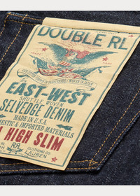 Slim-fitting jeans made in America with Tennessee-grown cotton. Yarn is ring-spun and rope-dyed in Japan using true indigo that has been specially developed to impart a red-blue cast. Woven on vintage wooden shuttle looms in Japan to create 16 oz. right-hand twill. Selvedge construction inspired by 1930s denim styles. Hand-finished in a process that involves up to 50 individual steps using specialized tools and techniques. Zip-fly construction. Rinsed. Sanforized® to minimize shrinkage. DETAILS - High Slim Fit: a medium rise and a slim thigh and leg. - Size 32W has a 9.5" rise and a 14.5" leg opening. - Hand-set, chain-stitched waistband with inserted belt loops for added durability. Zip fly with our signature buttoned closure. - American-made buttons, rivets, and washer burrs. Five-pocket styling. “RRL” embroidery at the coin pocket. - Leather “RRL”-debossed logo label at the back right waist. - Shell: 100% cotton. Patch: 100% leather. - Machine washable. For best results, wear 90 days without washing. - Made in USA with imported components. - Dyed with true indigo, which may rub off onto fabrics, leather, and upholstery. - Style Number: 100029118