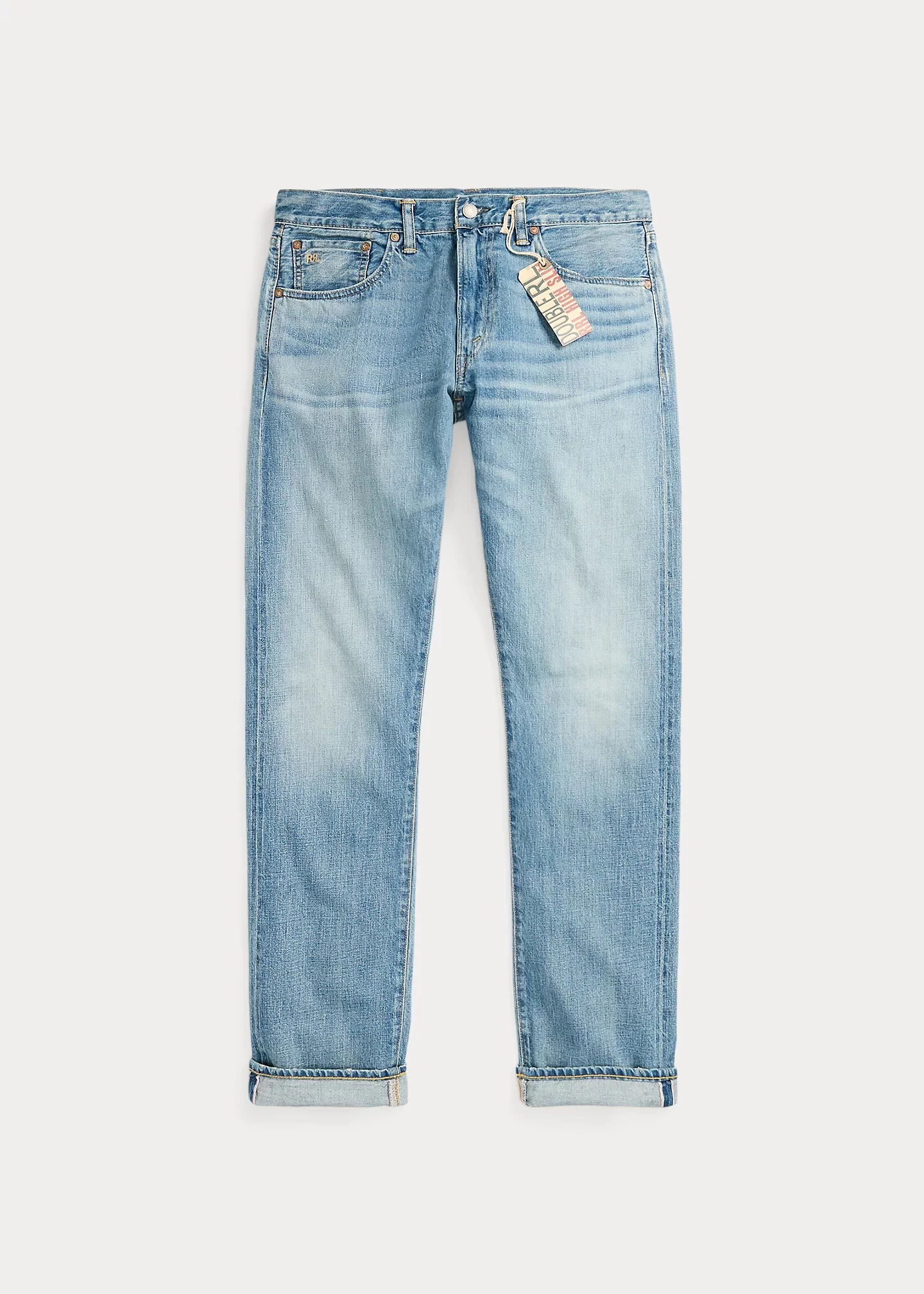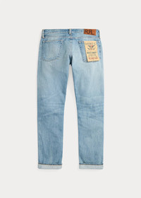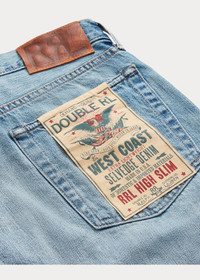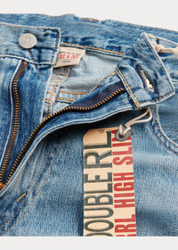 Slim-fitting jeans made in America with Double RL’s most lightweight twill that offers a substantial look. Custom-developed 11.3 oz. selvedge denim with a red-blue cast woven in Japan. Zip-fly construction. Hand-finished in a process that involves up to 50 individual steps using specialized tools and techniques. Sanforized® to minimize shrinkage. DETAILS - High Slim Fit: a medium rise and a slim thigh and leg. - Size 32W has a 9.5" rise and a 14.5" leg opening. - Hand-set chain-stitched waistband with inserted belt loops for added durability. Zip fly with our signature buttoned closure. - American-made buttons, rivets, and washer burrs. Five-pocket styling. “RRL” embroidery at the coin pocket. Twill pocket lining. - Leather “RRL”-debossed logo label at the back right waist. - Shell: 100% cotton. Patch: 100% leather. - Machine washable. For best results, wear 90 days without washing. - Made in USA with imported components. - Dyed with indigo, which may rub off onto fabrics, leather, and upholstery. - Style Number: 659156