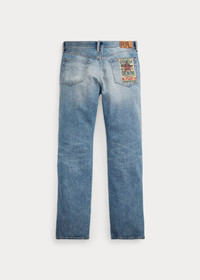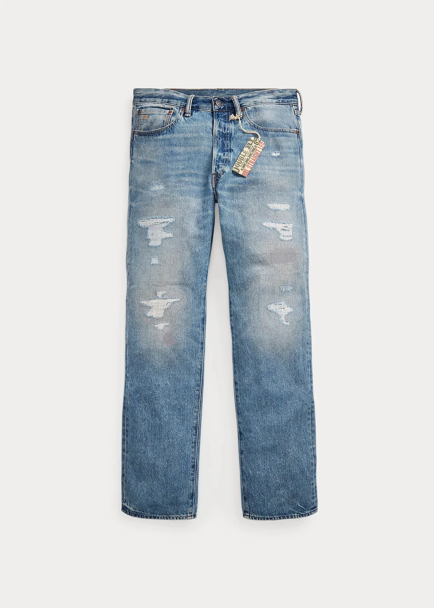 Straight-fitting jeans made from 13 oz. right-hand twill. Repaired details. Button-fly construction inspired by denim styles from the late 1960s. Sanforized® to minimize shrinkage. DETAILS - Straight Fit: a regular rise and a straight leg. - Size 32W has a 9.75" rise and a 16.75" leg opening. - Hand-set chain-stitched waistband with inserted belt loops for added durability. Button fly with our signature buttoned closure ensures a consistent fit through years of wear. - American-made buttons, rivets, and washer burrs. Five-pocket styling. “RRL” embroidery at the coin pocket. Twill pocket lining. - “RRL”-debossed logo label at the back right waist. - 100% cotton. - Machine washable. For best results, wear 90 days without washing. - Imported. - Dyed with true indigo, which may rub off onto fabrics, leather, and upholstery. - Style Number: 659159