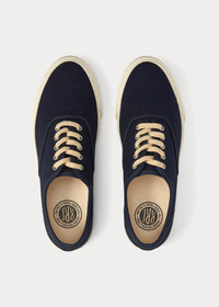 Inspired by a ’30s physical-training sneaker. Made from cotton canvas that is dyed with true indigo. Vulcanized rubber outsole. Constructed on a custom Double RL last. Available in men’s sizes from 5 to 13. We suggest women order two sizes smaller than their usual size. Please see the size chart for a conversion guide. DETAILS - Fits true to size. - Rounded toe. - Lace-up front. - Padded canvas insole. - Vulcanized rubber outsole. - Rubber “RRL” tag at the heel. - Comes with two sets of laces. - Cotton. Imported. - Available in men’s sizes from 5 to 13. We suggest women order two sizes smaller than their usual size. Please see the size chart for a conversion guide. Style Number: 475117