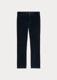 Trim-fitting pants made with wide-wale cotton corduroy from Japan. Dyed with indigo and washed. Finished with corozo buttons. DETAILS - Trim fit with a straight leg and standard rise. - Size 32W has an 11" rise and an 15.75" leg opening. - Belt loops. Interior buttons for braces. Button fly with a signature buttoned closure. Corozo buttons. - Two front angled pockets. Right hip coin pocket. Two back welt pockets. - 100% cotton. - Dry clean. - Imported. - Dyed with indigo, which may rub off onto fabrics, leather, and upholstery. - Model is 6'1" (185 cm) and wears a size 32W x 32L. Style Number: 648399