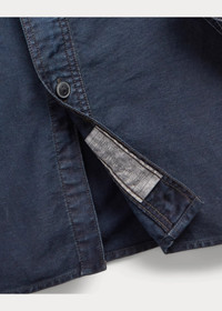 Made with Japanese sateen that is dyed with true indigo and overdyed black. Vintage-inspired workshirt detailing. DETAILS - Size medium has a 30" back body length, an 18.75" shoulder, a 44" chest, and a 34.75" sleeve length. Sleeve length is taken from the center back of the neck and changes 1" between sizes. - Point collar. Buttoned placket. - Long sleeves with buttoned barrel cuffs. - Two chest buttoned pockets. - 60% cotton, 40% linen. - Machine washable. - Imported. - Dyed with true indigo, which may rub off onto fabrics, leather, and upholstery. Style Number: 659065