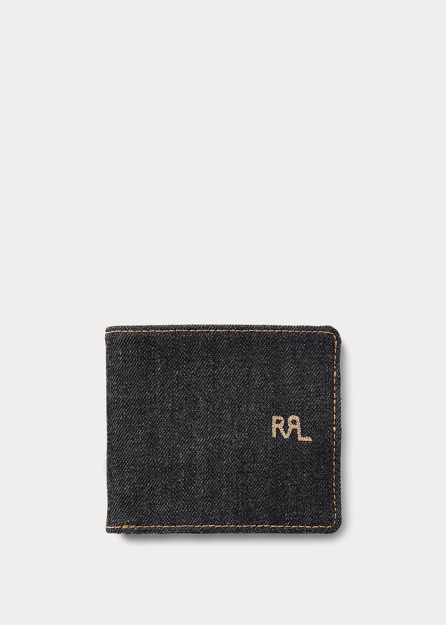 Lightweight billfold made from indigo-dyed denim. Double RL logo embroidered at the front. Signature patch at the interior. DETAILS - Eight interior card slots, one currency pocket, and two slip pockets. - "RRL" logo embroidered at the front. "RRL" patch at the interior. - Card slots lined with nylon. - 4" H x 4¼" L. - Shell: cotton. Lining: nylon. - Imported. - Comes in a signature box. Style Number: 394726