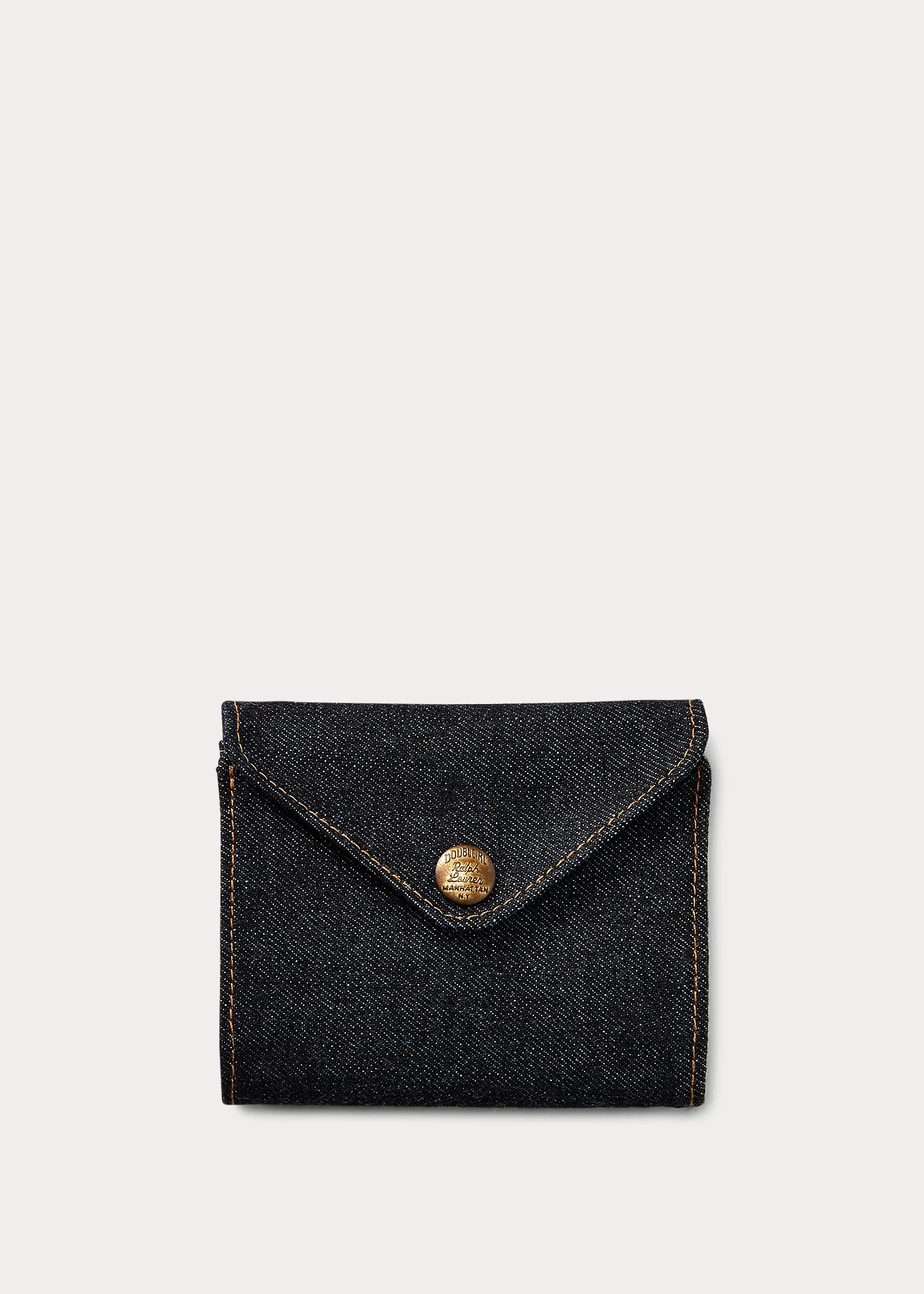Lightweight wallet made from indigo-dyed denim. Four card slots at the interior. Engraved snapped closure. DETAILS - 4" H x 4" L. - Snapped closure with leather trim at the interior. - Four card slots. - Cotton. - Imported. Japanese denim. - Comes in a signature box. Style Number: 470077