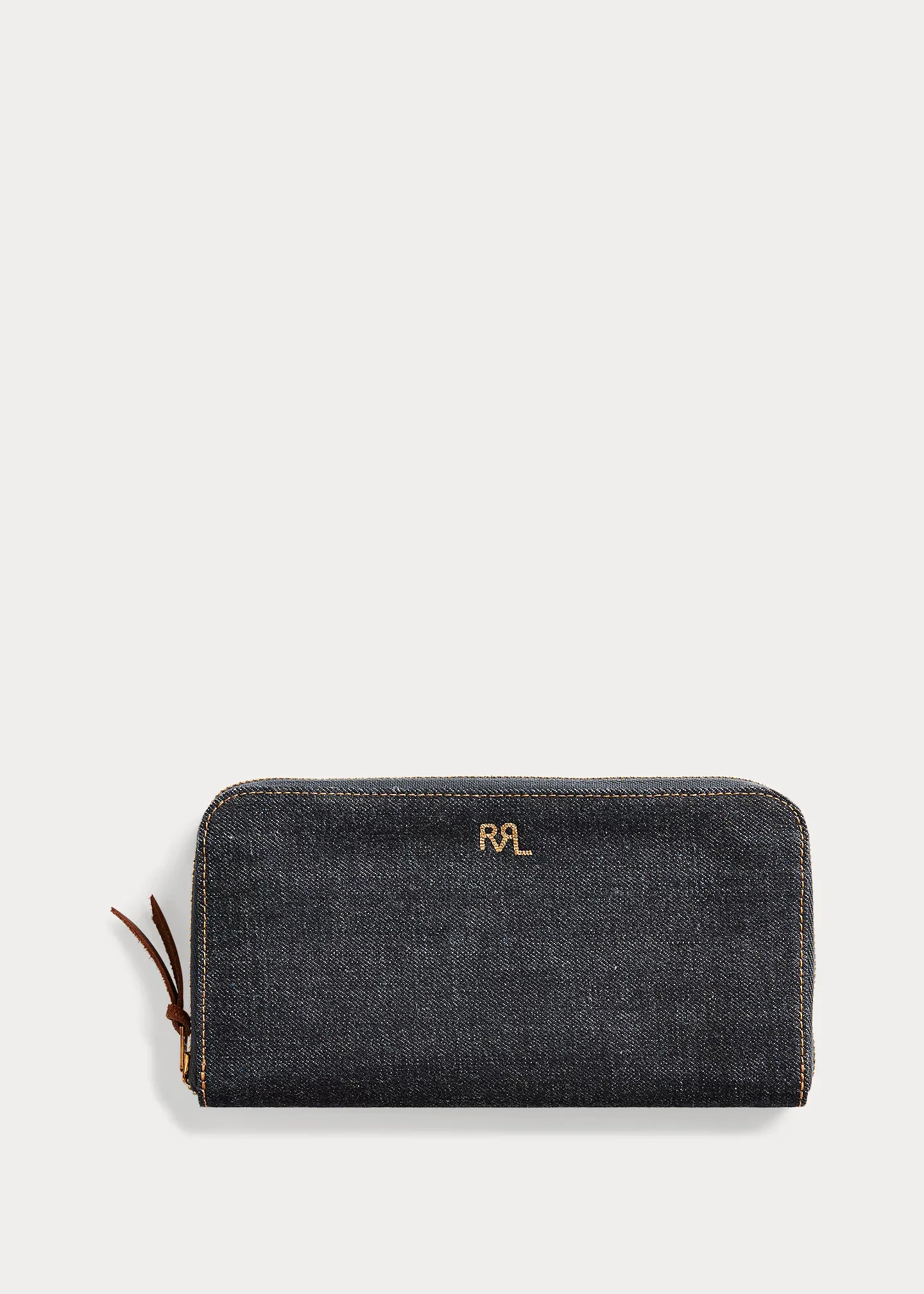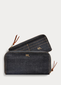 Made from indigo-dyed denim. Removable coin wallet at the interior with six card slots. Ranch logo embroidered at the front. Brass zippers with leather pull tabs. DETAILS - Zips along three sides. - Removable coin wallet at the interior zips along two sides. Six card slots at the exterior. - “RRL” logo embroidered at the front of both wallets. - Brass zippers with leather pull tabs. - 4½" H x 8½" W. - Cotton. - Imported. - Comes in a box. Style Number: 493701