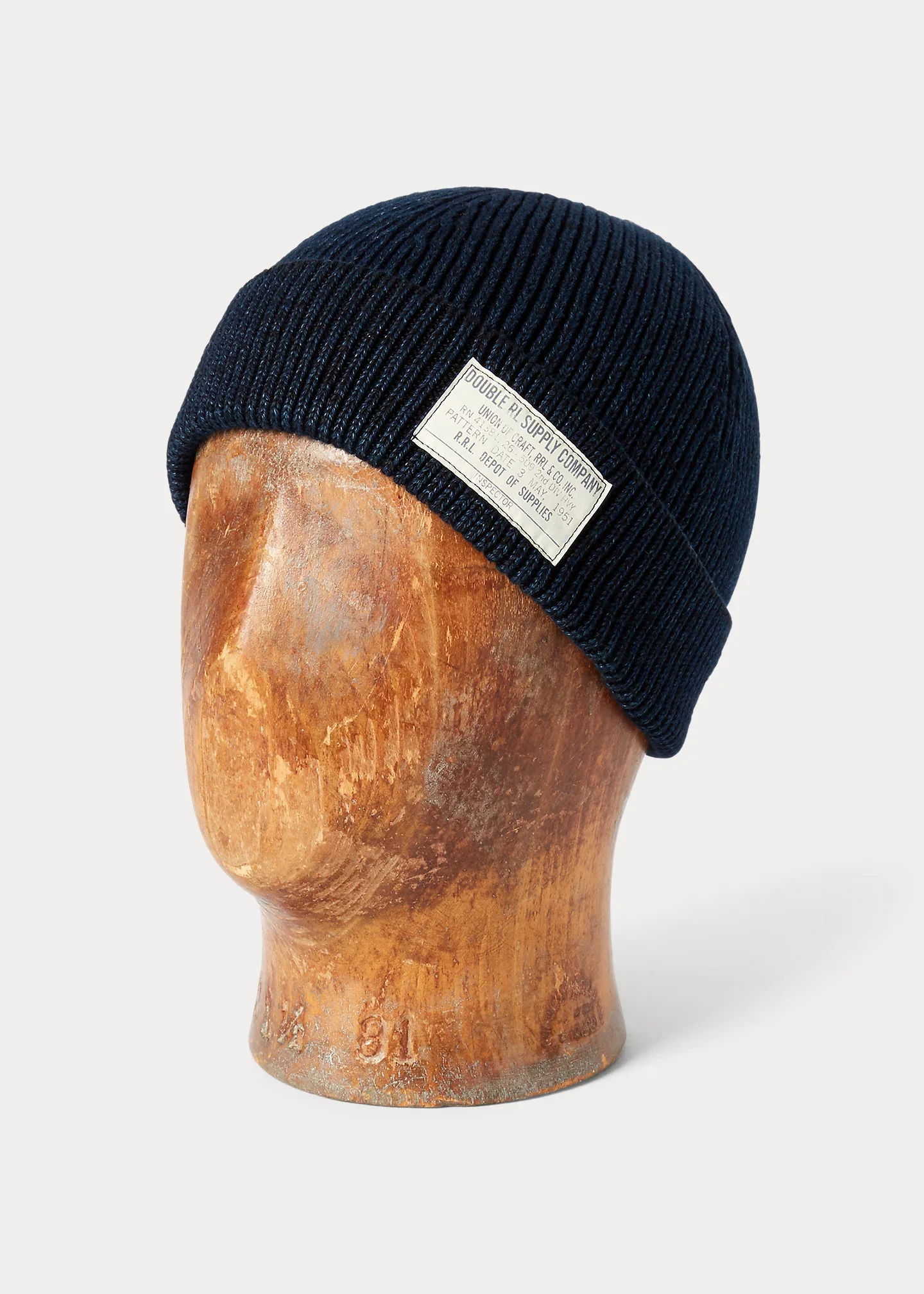 Mid-weight watch cap. Knit from true-indigo–dyed cotton. DETAILS - Seamed crown. - Fold-over brim. - "Double RL Supply Company" patch at the front right brim. - 9¼" L x 9¼" brim width. - 100% cotton. - Machine washable. - Imported. - Dyed with true indigo, which may rub off onto fabrics, leather, and upholstery. Style Number: 394784