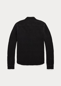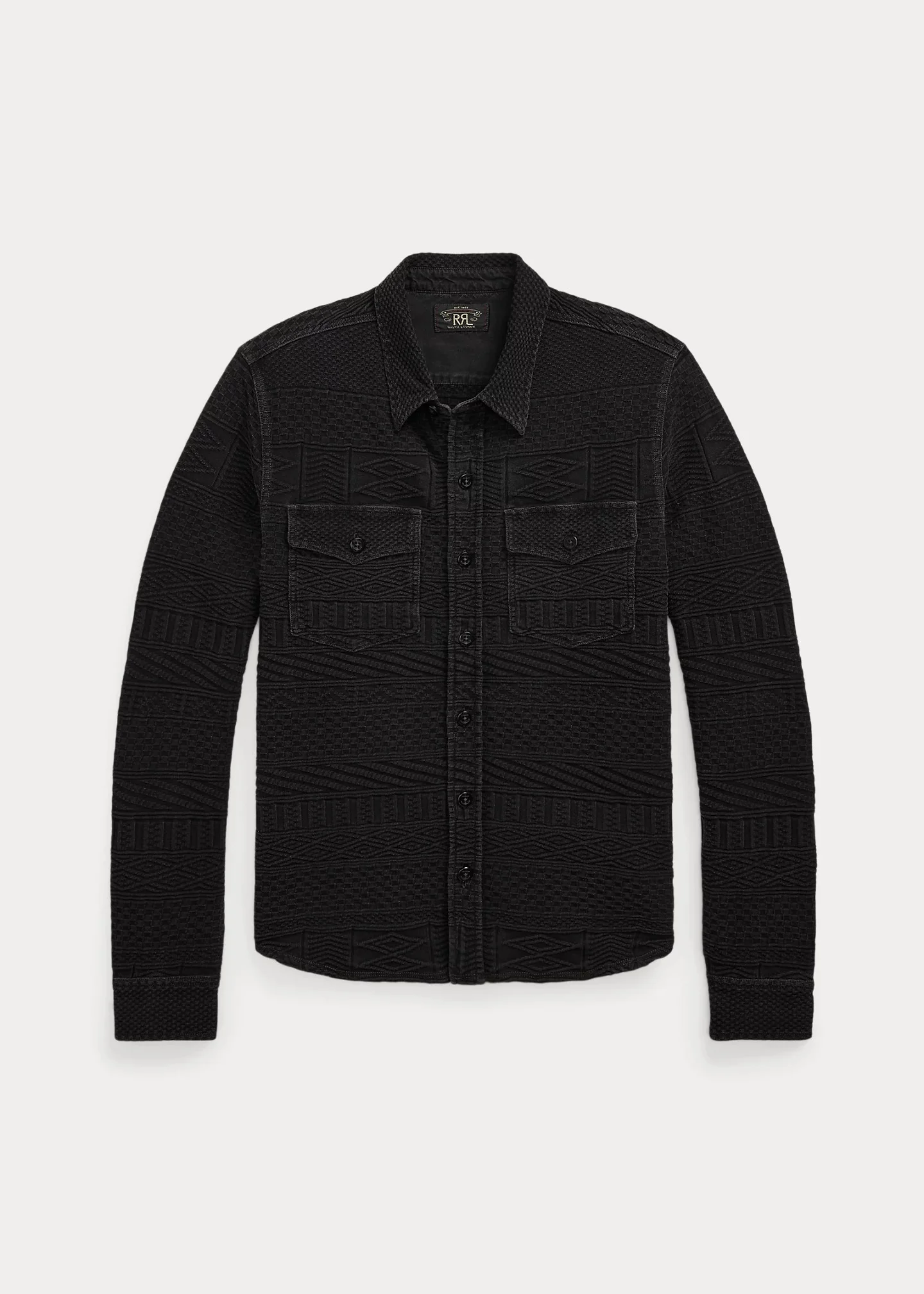 Made with double-knit cotton jacquard fabric. Model and pattern are based on a Double RL shirt sweater. Oxford reinforcements at the interior. DETAILS - Size medium has a 28" front body length, an 18" shoulder, a 43" chest, and a 33.75" sleeve length. Sleeve length is taken from the center back of the neck. - Straight collar. Buttoned placket. - Long sleeves with buttoned barrel cuffs. - Two chest buttoned pockets. - Oxford reinforcements at the interior. - 100% cotton (exclusive of trim). - Dry clean. - Imported. - Style Number: 100057951