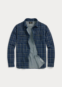 Lightweight double-faced cotton cloth is dyed with true indigo. Yarn-dyed plaid exterior and striped interior. Authentic runoff chain-stitched construction at the side seams, which is based on workshirts from the 1920s and ’30s. Washed for added softness. DETAILS - Size medium has a 29" back body length, an 18.25" shoulder, a 43.5" chest, and a 34.75" sleeve length. Sleeve length is taken from the center back of the neck. - Straight collar. Buttoned placket. - Long sleeves with buttoned barrel cuffs. - Two chest buttoned pockets. - Authentic runoff chain-stitched construction at the side seams. - 100% cotton. - Machine washable. - Imported. - Dyed with true indigo, which may rub off onto fabrics, leather, and upholstery. - Style Number: 100044079