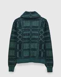 Inspired by 1960s overshot blankets, this special cotton cardigan is knit using a ladder-back float-jacquard technique to create a highly textured effect. The cardigan is knit using a variety of indigo yarns that have been dyed at different rates to create a multi-color effect when used together. Equipped with oversized horn buttons and finished with two pockets at the waist. - Indigo-dyed - Textured cotton slub yarn - Shawl collar design with button placket - Anchor-etched horn buttons - Elongated sleeves - Two pockets at waist - Rib-knit cuffs and hem - 100% cotton - Made in China