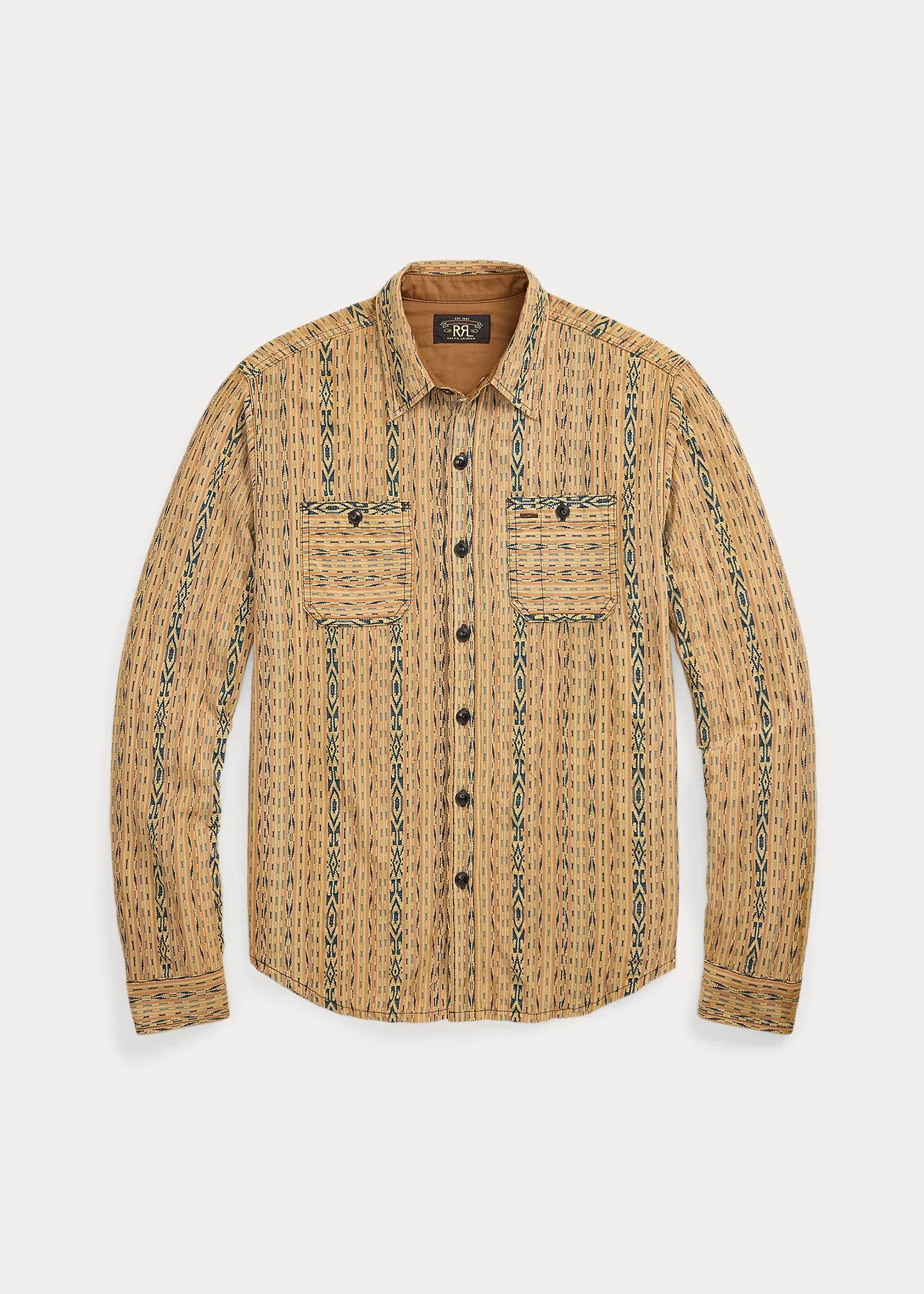 Classic workshirt model made with a cotton jacquard fabric. Pattern and color palette are inspired by a vintage swatch. DETAILS - Size medium has a 29.25" back body length, an 18.25" shoulder, a 43" chest, and a 34.5" sleeve length. Sleeve length is taken from the center back of the neck. - Straight collar. Buttoned placket. - Long sleeves with buttoned barrel cuffs. - Two chest buttoned pockets. - 100% cotton. - Machine washable. - Imported. - Style Number: 100067758