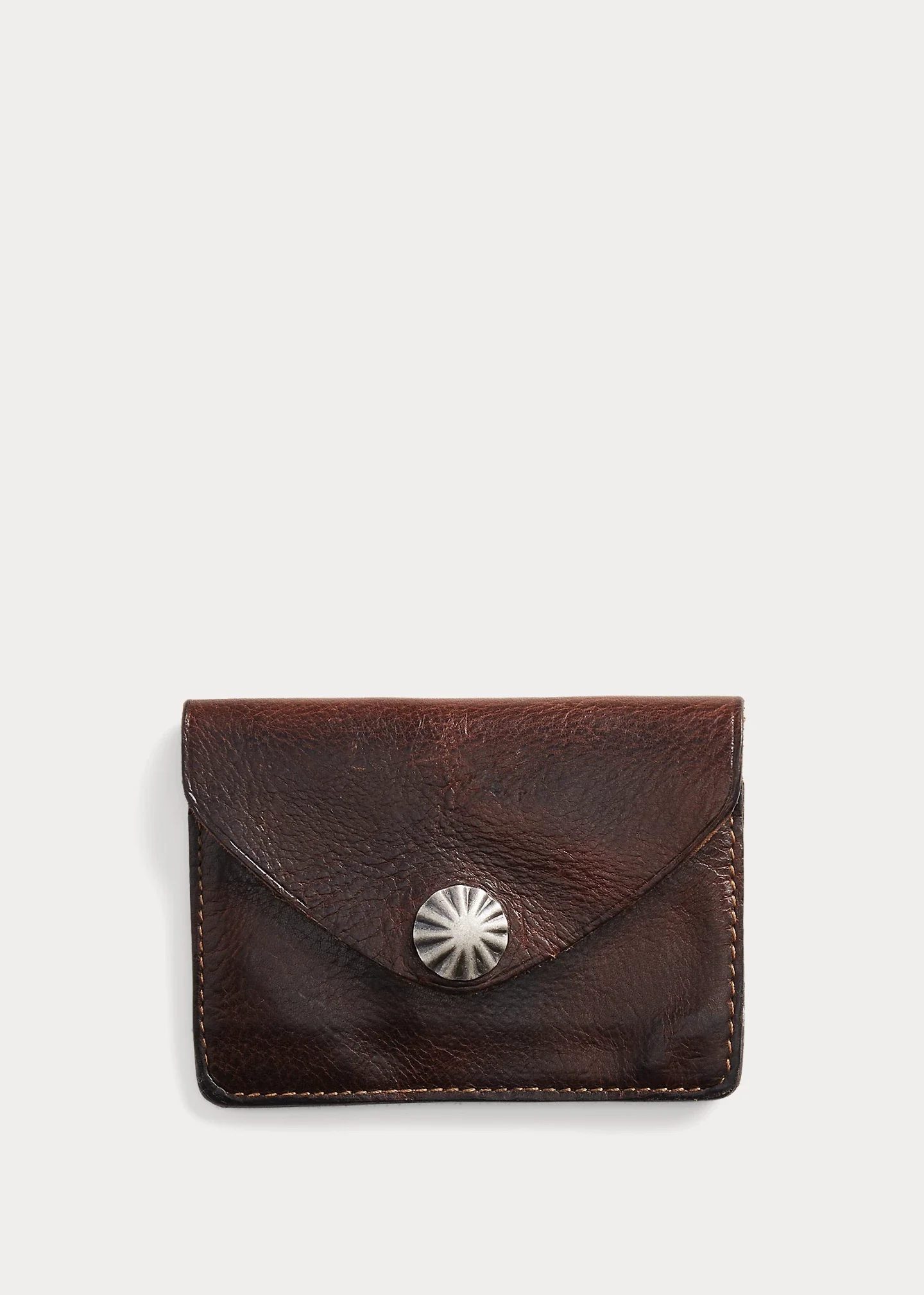 Made with vegetable-tanned Italian leather. Metal snap at the front with a vintage silver-tone finish. “RRL” logo debossed at the back. DETAILS - Fold-over flap at the front fastens with a silver-tone snap. - “RRL” debossed at the back. - Three card slots at the interior. Slip pocket at the back. - Unlined. - 3" H x 4" L. - 100% leather. - Imported. - Comes in a signature Double RL box. Style Number: 634626