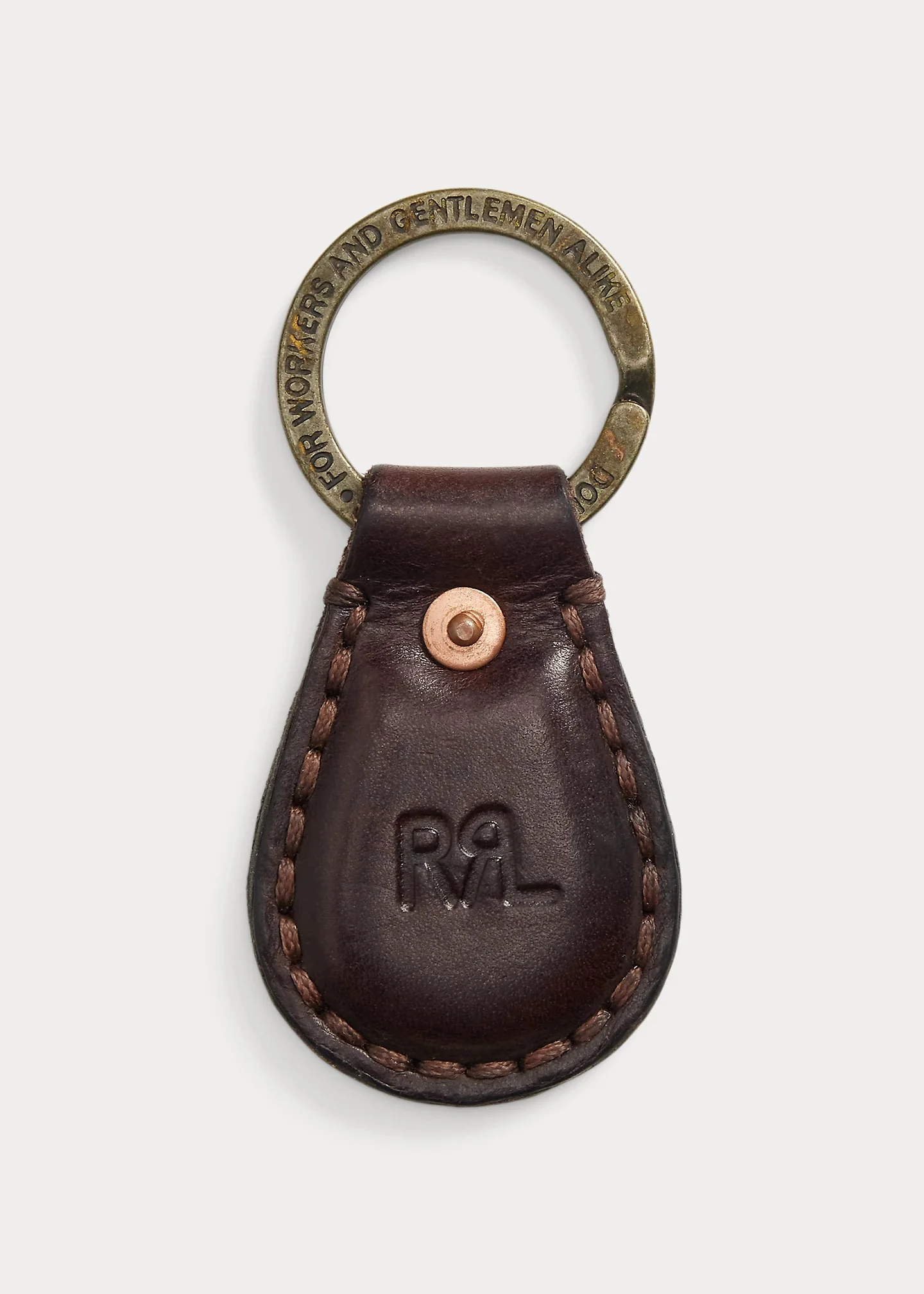 Made with vegetable-tanned, full-grain leather from an Italian tannery. Double RL Ranch logo embossed at the front and back. Waxed-thread stitching along the edges. Brass key ring with an iron finish. Copper-tone rivet. DETAILS - 2.5" H x 1.5" L. - Double RL Ranch logo embossed at the front and back. - “Double RL and Co For Workers and Gentlemen Alike” engraved on iron-finished brass key ring. - Leather. - Imported. - Style Number: 100064832
