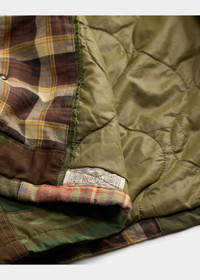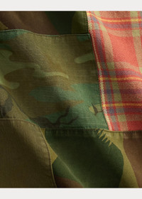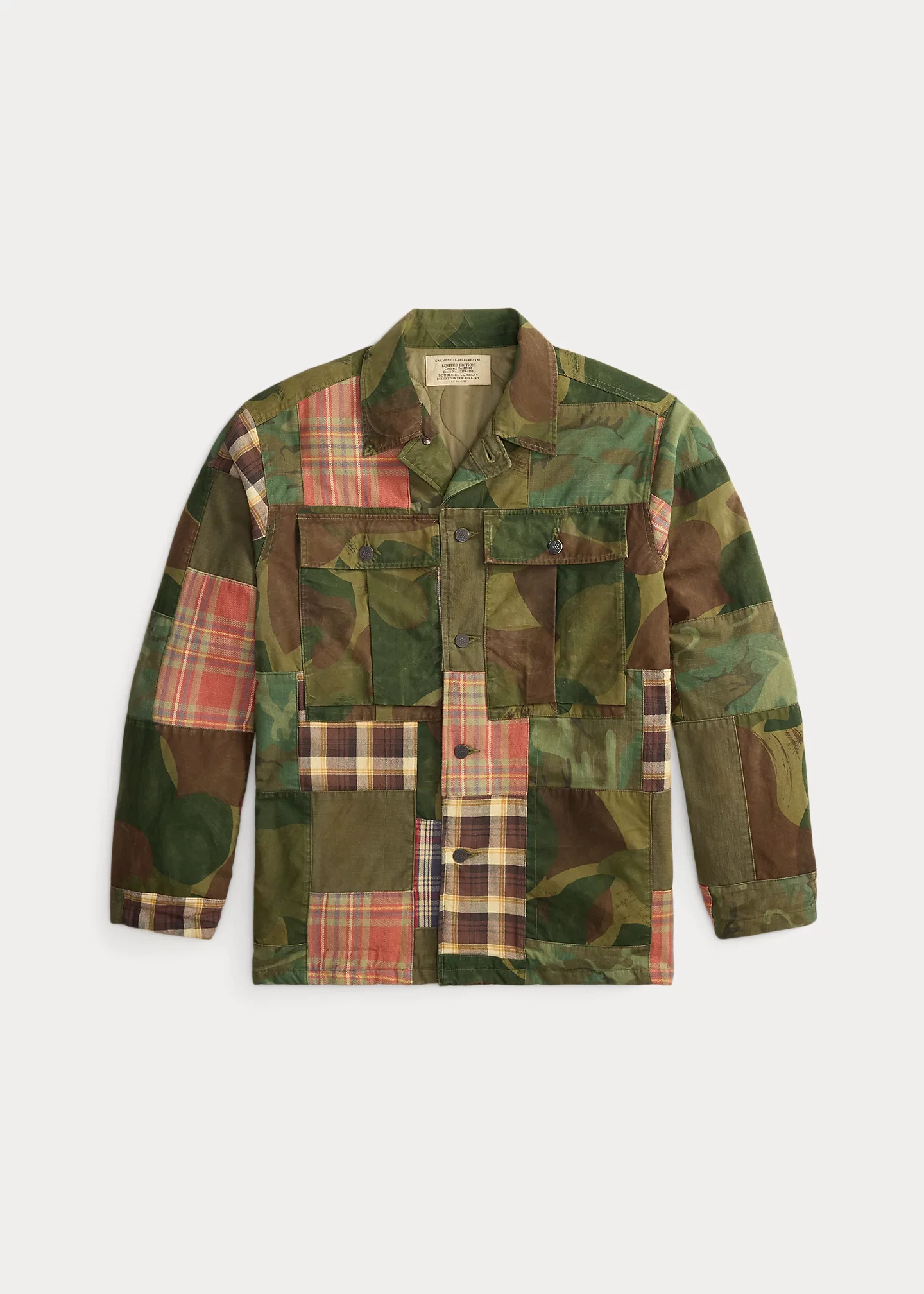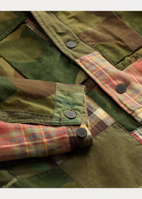 Patchwork design composed of a variety of cotton fabrics, including multiple plaid patterns, olive-hued twill, and two different camo prints rendered on canvas and ripstop. Details inspired by ’40s surplus garments. Onion-quilted ripstop interior. Insulated with a lightweight down-alternative fill. Metal buttons. Edition of 500. DETAILS - Size medium has a 28.5" back body length, a 19" shoulder, a 46" chest, and a 34.5" sleeve length. Sleeve length is taken from the center back of the neck. - Straight collar. Buttoned placket. Metal buttons. - Long sleeves with buttoned barrel cuffs. - Two chest buttoned pockets. - Fully lined and filled. Onion-quilted ripstop interior. - 100% cotton. - Machine washable. - Imported. - Edition of 500. - Style Number: 100078199