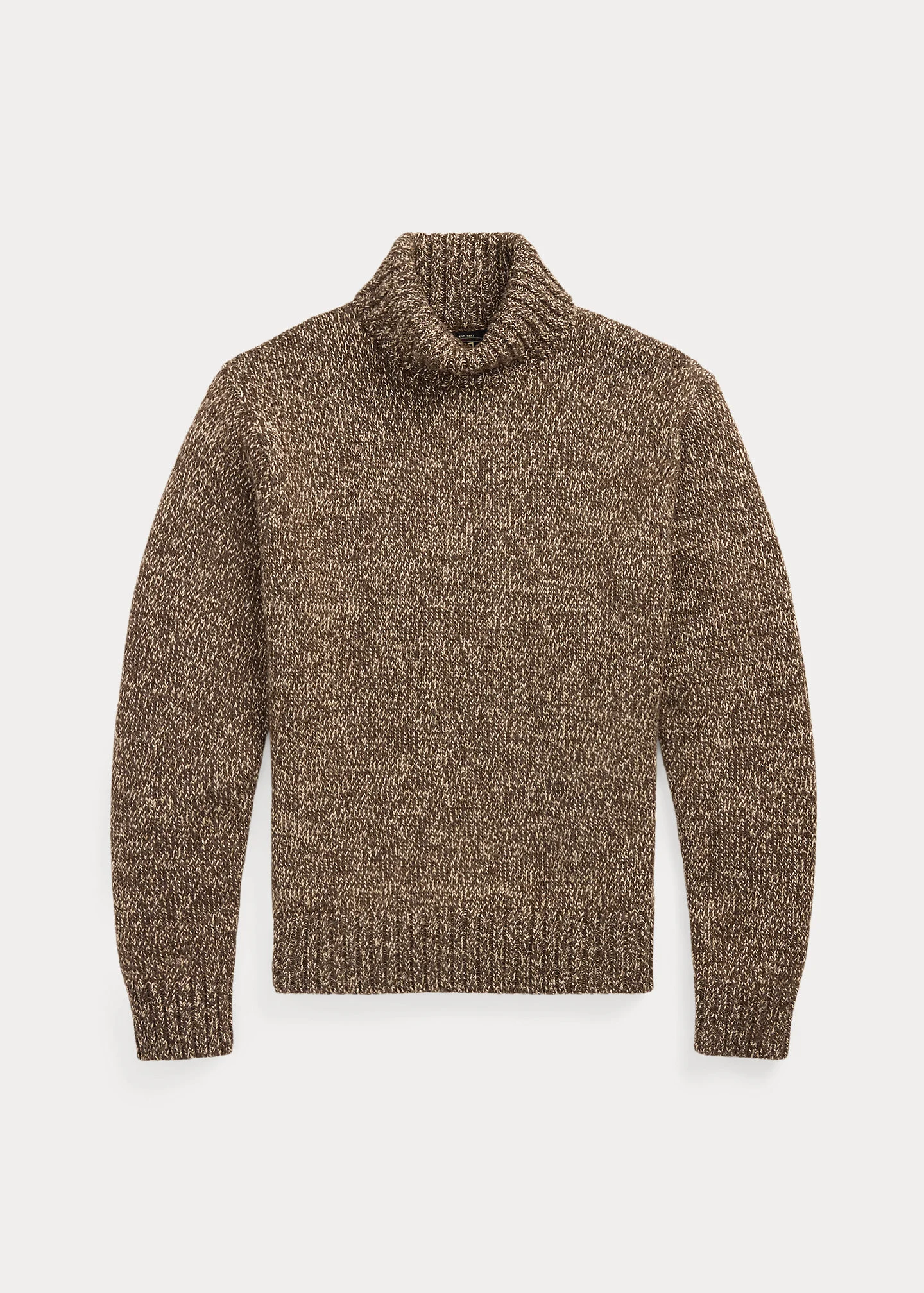 Made with wool, cotton, and linen. Special slub yarns create a vintage look. Jersey-knit construction. Ribbed turtleneck, cuffs, and hem. DETAILS - Size medium has a 25.5" body length, a 17.5" shoulder, a 40" chest, and a 34" sleeve length. Sleeve length is taken from the center back of the neck. - Rib-knit turtleneck. - Long sleeves with rib-knit cuffs. - Rib-knit hem. - 49% wool, 35% cotton, 16% linen. - Machine washable. - Imported. - Style Number: 100068267