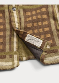 Jacquard-woven cotton fabric is fiber-dyed and features a brushed finish. Twill reinforcements at the interior. Vintage-inspired custom snaps. DETAILS - Size medium has a 28.5" back body length, a 19.25" shoulder, a 45.5" chest, and a 34.75" sleeve length. Sleeve length is taken from the center back of the neck. - Straight collar. Snapped placket. Metal snaps custom-developed with a "Double RL Ralph Lauren Manhattan" logo. - Long sleeves with snapped barrel cuffs. - Two chest snapped pockets. Overlapping pocket at the left chest. Side on-seam pockets. - Twill reinforcements at the interior. - 100% cotton. - Machine washable. - Imported. - Style Number: 100059661