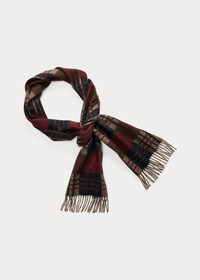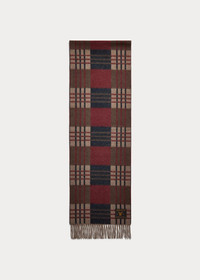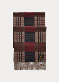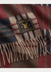 Made in Scotland with wool-and-cashmere yarns. Large check pattern with overlaid plaid motif. Brushed finish. Fringed ends. Woven logo label with a deer graphic is hand-tacked at the back right corner. DETAILS - Scarf: 74.75" L x 11.75" W. Fringe: approx. 3" L. - Fringed ends. - Woven “Double RL & Co.” deer label hand-tacked at the back right corner. - 95% wool, 5% cashmere. - Dry clean. - Made in Scotland. - Comes in a signature box. - Style Number: 100066657