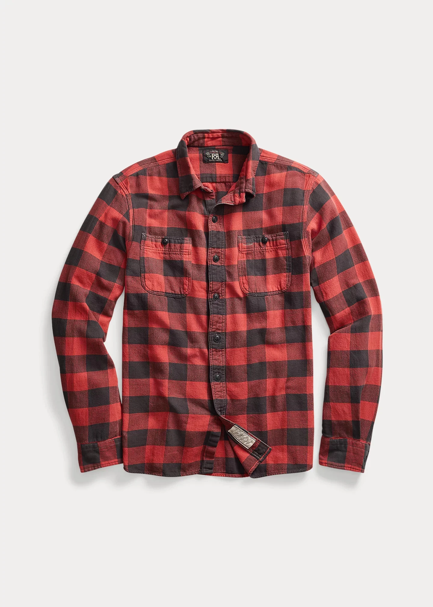 Workwear-inspired shirt cut from lightweight cotton twill. Yarn-dyed plaid pattern. Utility pockets at the chest. DETAILS - Size medium has a 30" back body length, an 18¼" shoulder, a 43½" chest, and a 34¾" sleeve length. Sleeve length changes 1" between sizes. - Point collar. Buttoned placket. - Long sleeves with buttoned barrel cuffs. - Two chest buttoned pockets. - 100% cotton. - Machine washable. - Imported. Style Number: 538585