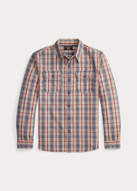 Made with substantial cotton twill cloth that is brushed at the underside of the fabric. Yarn-dyed plaid pattern. Details inspired by vintage workshirts. DETAILS - Workshirt Fit: Double RL’s slightly more relaxed fit with more ease through the body and sleeves. - Size medium has a 29" back body length, an 18.25" shoulder, a 43.75" chest, and a 34.5" sleeve length. Sleeve length is taken from the center back of the neck. - Straight collar. Buttoned placket. - Long sleeves with buttoned barrel cuffs. - Two chest buttoned pockets. - 100% cotton. - Machine washable. - Imported. - Style Number: 100078194