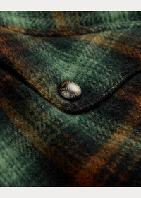 Made with brushed wool twill. Yarn-dyed shadow-plaid pattern. Waist pockets feature an additional side entry. Vintage-inspired custom metal snaps. DETAILS - Size medium has a 28" back body length, a 19.5" shoulder, a 46.75" chest, and a 34.25" sleeve length. Sleeve length is taken from the center back of the neck. - Straight collar. Twill undercollar. Buttoned placket. - Long sleeves with buttoned barrel cuffs. - Two chest snapped pockets. Overlapping pocket at the left chest. Two front waist snapped pockets with an additional side entry. Metal snaps custom-developed with a “Double RL Co. Outfitters Est. 1993” logo. - Shell: 100% wool. Undercollar: 100% cotton. - Hand wash or dry clean. - Imported. - Style Number: 100059687
