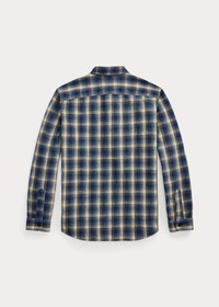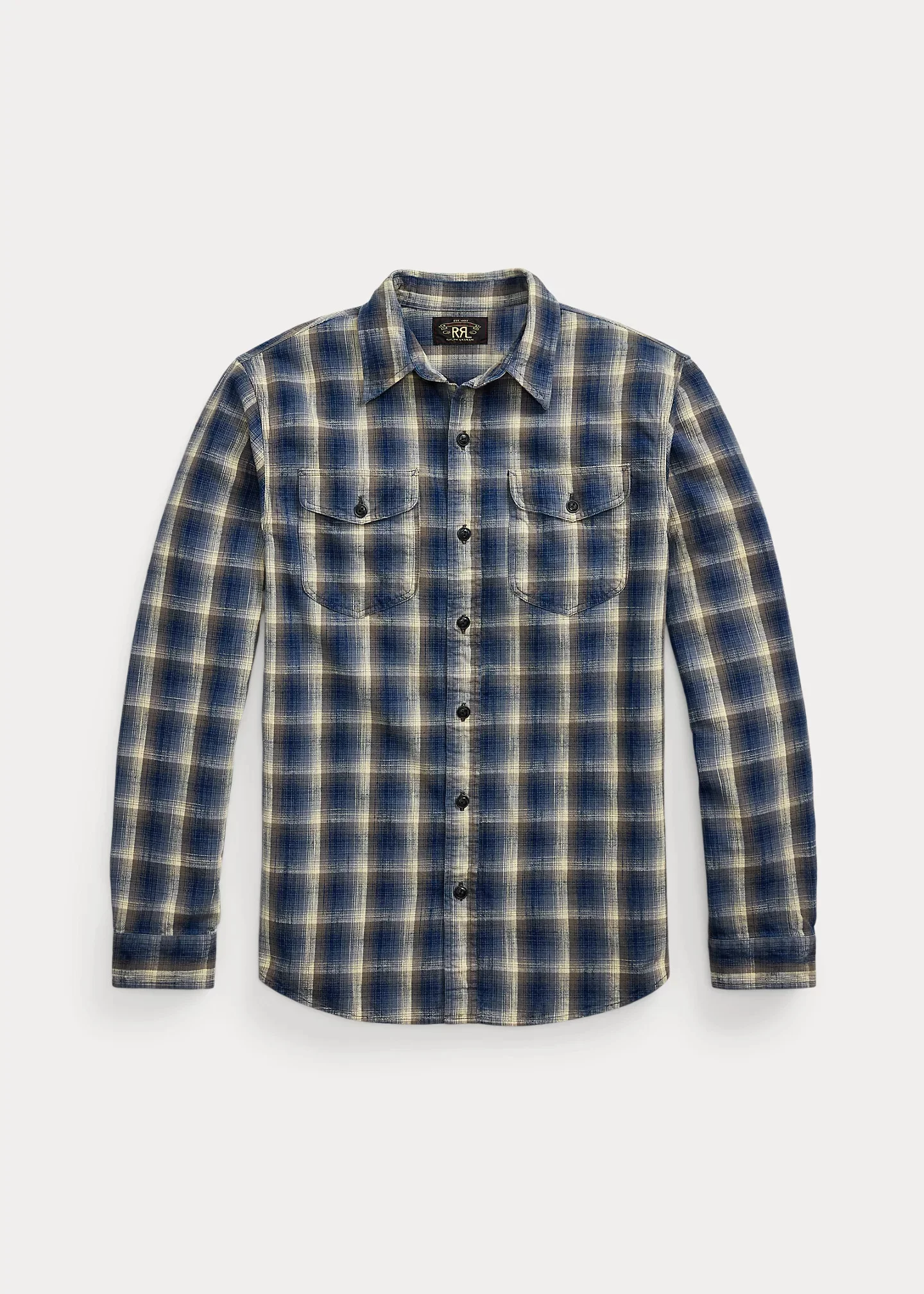 Made with woven cotton cloth. Yarn-dyed plaid pattern. Details inspired by vintage workshirts. Washed for added softness. DETAILS - Workshirt Fit: Double RL’s slightly more relaxed fit with more ease through the body and sleeves. - Size medium has a 29" back body length, an 18.25" shoulder, a 43.5" chest, and a 34.75" sleeve length. Sleeve length is taken from the center back of the neck. - Straight collar. Buttoned placket. - Long sleeves with buttoned barrel cuffs. - Two chest buttoned pockets. - 100% cotton. - Machine washable. - Imported. - Style Number: 100056593