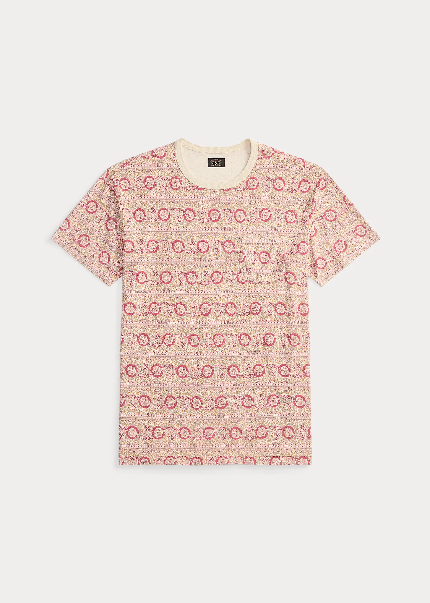 Made with soft cotton jersey. Heathered base with an allover print. Pattern is inspired by a vintage fabric. Patch pocket at the left chest. DETAILS - Size medium has a 27.5" front body length, an 18.25" shoulder, and a 41" chest. - Crewneck. - Short sleeves. - Left chest patch pocket. - 100% cotton. - Machine washable. - Imported. - Style Number: 100086522