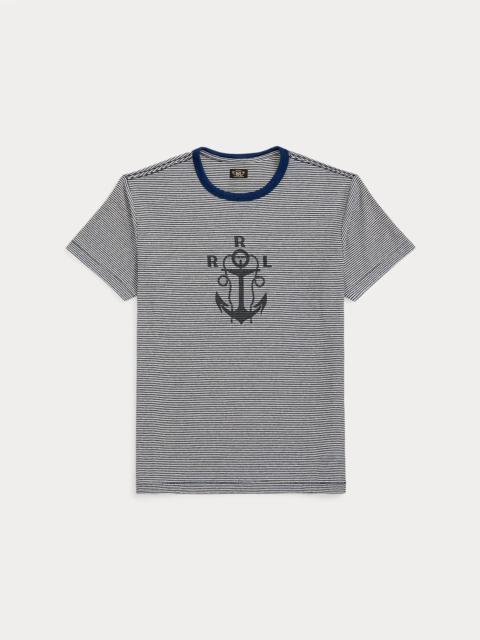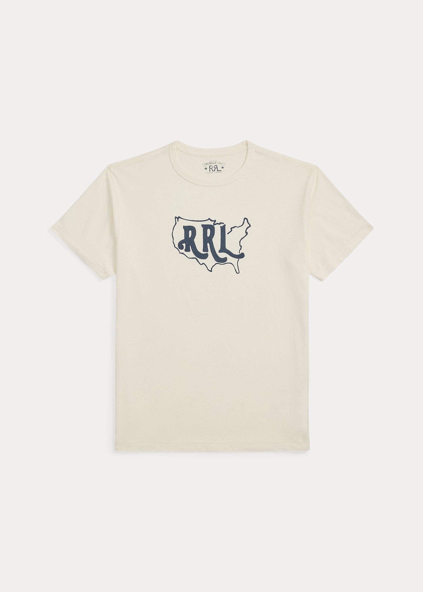 Made with cotton-and-hemp jersey. Logo graphic with an outline of the USA printed at the front using a water-based technique. DETAILS - Size medium has a 28" front body length, an 18.25" shoulder, and a 41" chest. - Crewneck. - Short sleeves. - “RRL” graphic with an outline of the USA printed at the center front. - 79% cotton, 21% hemp. - Machine washable. - Imported. - Style Number: 100048780