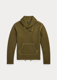 Made with double-knit cotton jacquard. Channel-quilted design with insulation. Drawstring hem. DETAILS - Size medium has a 26.5" front body length, an 18" shoulder, a 44" chest, and a 35.4" sleeve length. Sleeve length is taken from the center back of the neck. - Shawl collar with a two-button closure at the right side. - Long sleeves. - Kangaroo pocket. - Drawstring hem. Quilted interior. - Shell and interior: 100% cotton. Fill: 100% polyester. - Machine washable. - Imported. - Style Number: 100068112