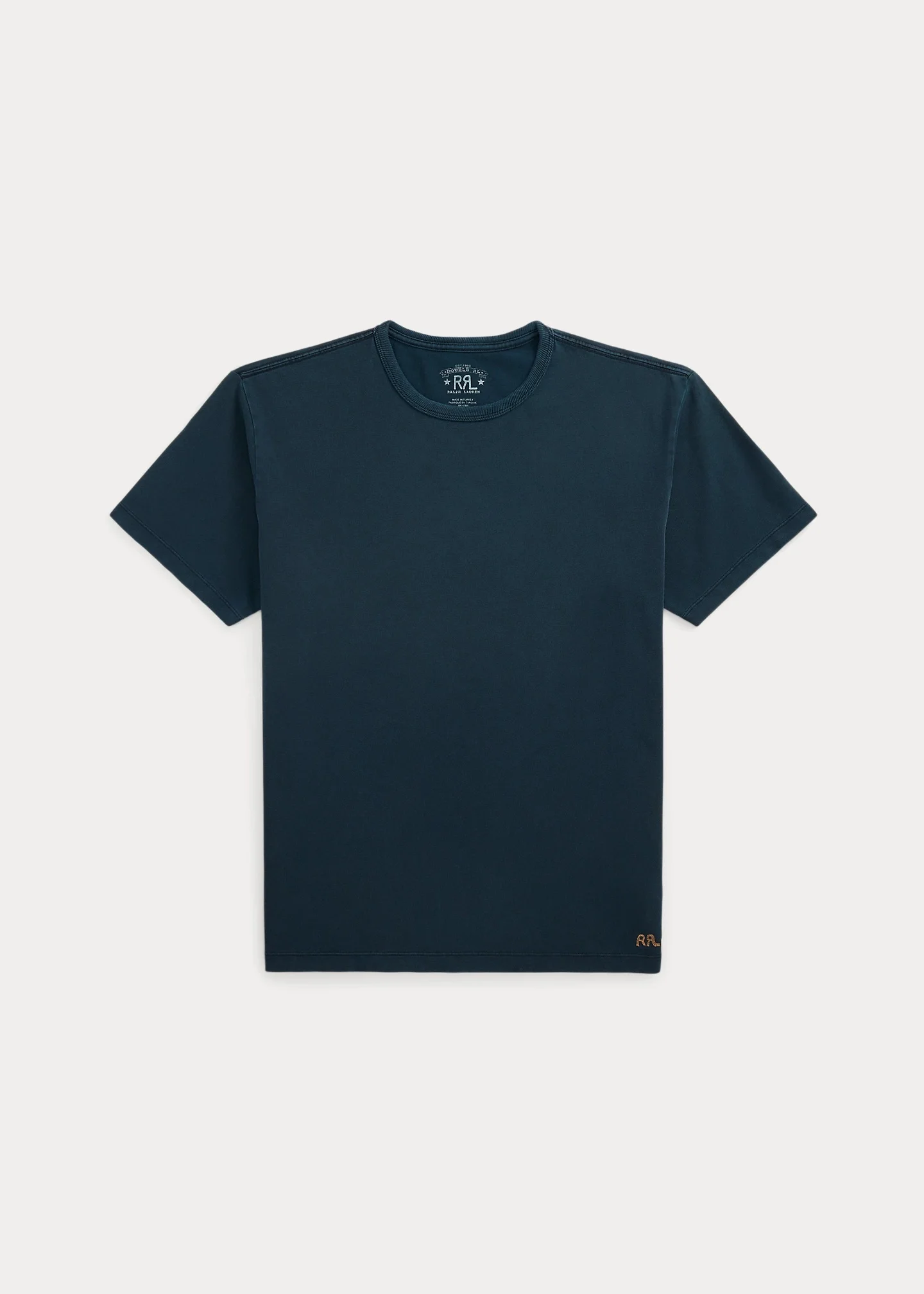 Relaxed-fitting T-shirt made with heavyweight cotton jersey. Bias ribbed crewneck. Chain-stitched embroidery of the Double RL Ranch logo at the hem. DETAILS - Double RL’s most relaxed silhouette with a boxy fit with extended sleeve. - Size medium has a 28" front body length, a 19.25" shoulder, and a 42.75" chest. - Crewneck. - Short sleeves. - Chain-stitched “RRL” embroidery at the left hem. - Cotton. Machine washable. Imported. - By choosing our cotton products, you’re supporting our investment in the Better Cotton™ mission to help cotton communities survive and thrive, while protecting and restoring the environment. - This product is sourced via a system of mass balance and therefore may not contain Better Cotton™. Visit bettercotton.org/massbalance for more information about mass balance. - Due to the natural characteristics of this material, the coloring may rub off onto fabrics and upholstery. - Style Number: 100044043