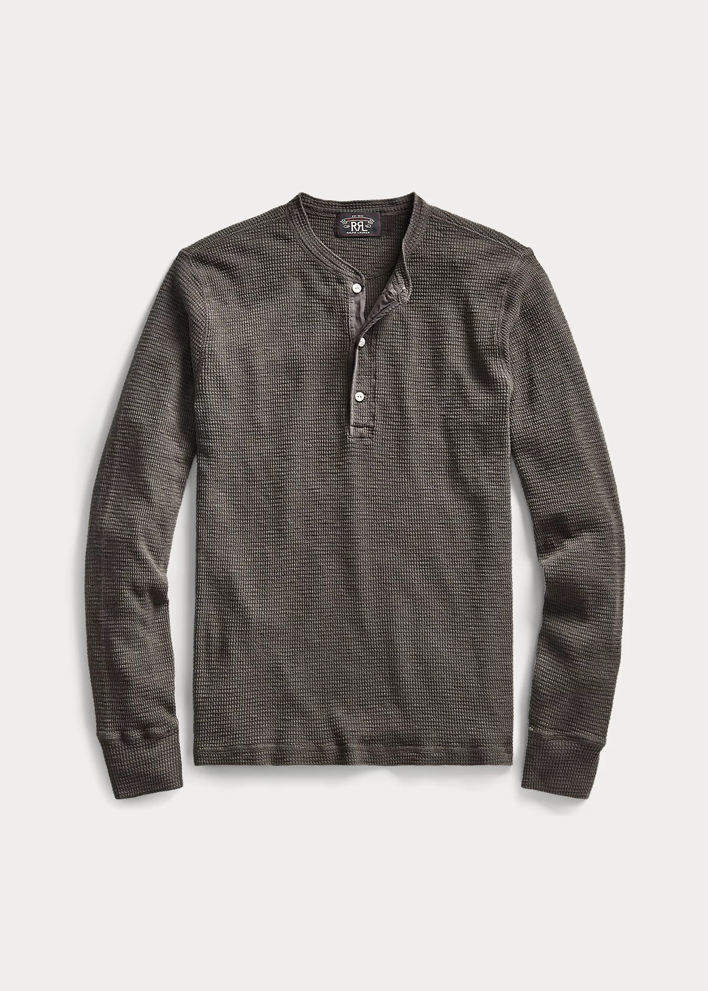 Lightweight, textured thermal. Washed to give it a soft, vintage feel. DETAILS - Size medium has a 27½" body length, a 16" shoulder, a 36" chest, and a 34½" sleeve length. Sleeve length is taken from the center back of the neck and changes 1" between sizes. - Henley neckline. - Three-button placket with sateen facing. Fish-eye buttons. - Long sleeves with ribbed cuffs. - 100% cotton. - Machine washable. - Imported. Style Number: 86348