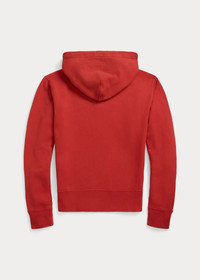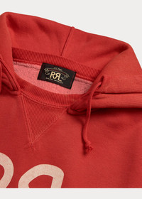 Cotton-blend fleece hoodie printed with the logo of the Double RL Ranch, which is located in Ridgway, Colorado. Garment-dyed and washed for a timeworn look. Now available in extended XXS sizing. Sizes are based on Double RL men’s sizes. For customers who typically wear women’s apparel, we recommend ordering one size down from their usual size. DETAILS - Now available in extended XXS sizing. Sizes are based on Double RL men’s sizes. For customers who typically wear women’s apparel, we recommend ordering one size down from their usual size. - Standard Fit. Size medium has a 26½" body length (front and back), a 19" shoulder, a 22" chest, and a 35" sleeve length. Sleeve length is taken from the center back of the neck and changes 1" between sizes. - Crewneck with a ribbed double V-inset. Drawstring hood. - Long sleeves with ribbed cuffs. - Two front waist patch pockets. - “RRL” printed at the center front. - Ribbed hem. - Shell: cotton, polyester. V-insets, cuffs, and hem: cotton. - Machine washable. Imported. Style Number: 493725